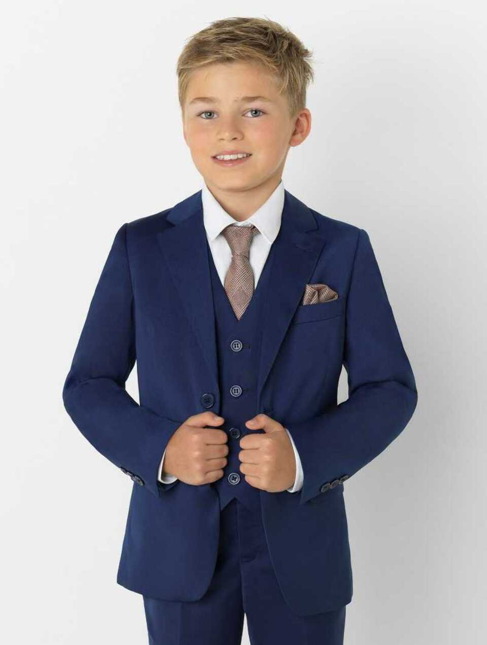 Navy blue boys suits are the gold standard of children's formal wear. This timeless colour works for absolutely every occasion - weddings in any season, christenings, first communion (increasingly popular as an alternative to white), school events, and family celebrations. Navy suits photograph beautifully, hide minor spills or marks better than lighter colours, and can be paired with virtually any shirt and tie combination.