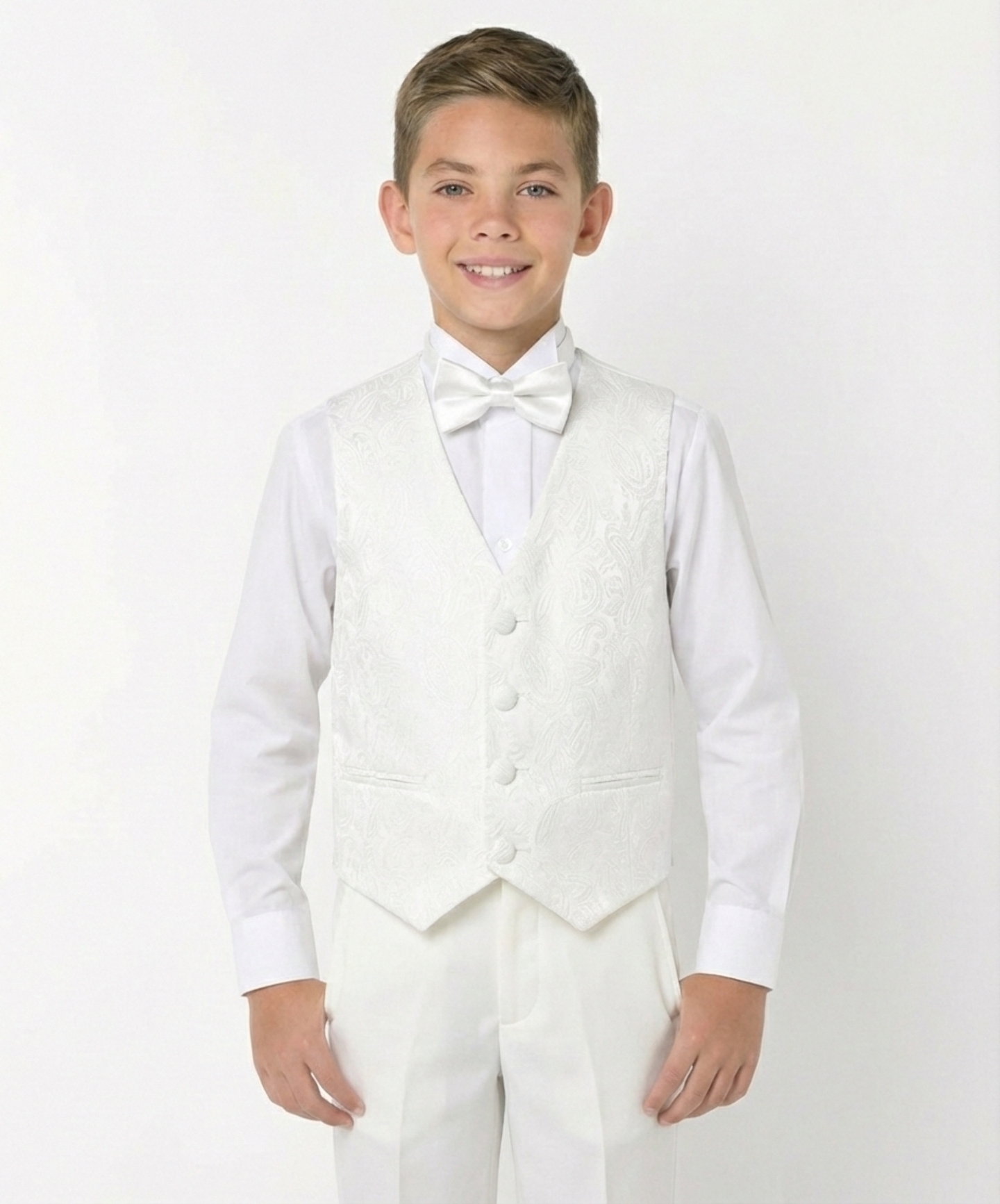 Abraham Ivory Cream Paisley Jacquard Boys Formal V-Neck Waistcoat | Lucys