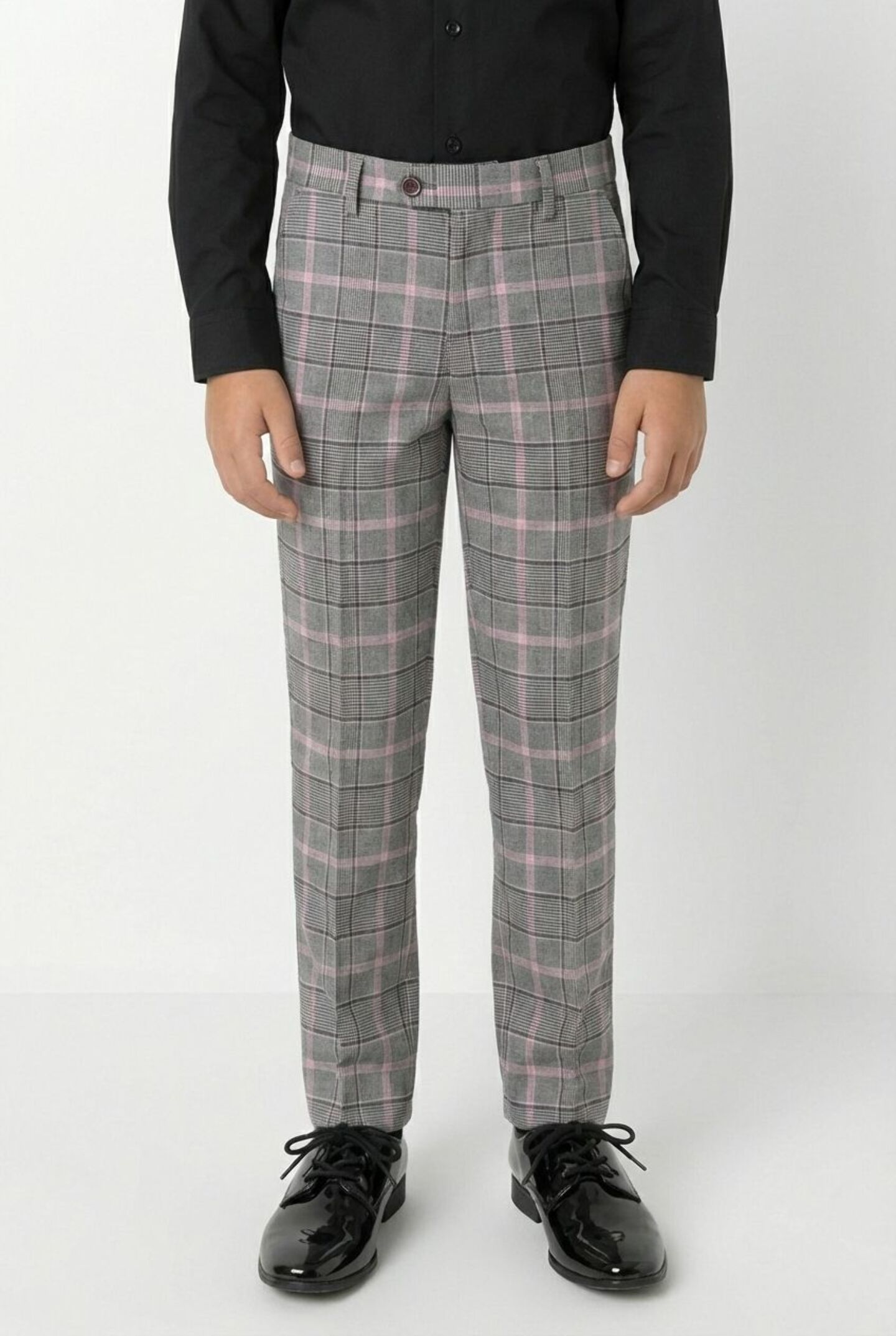 Antonio Grey Pink Check Boys Formal Dress Trousers | Lucys