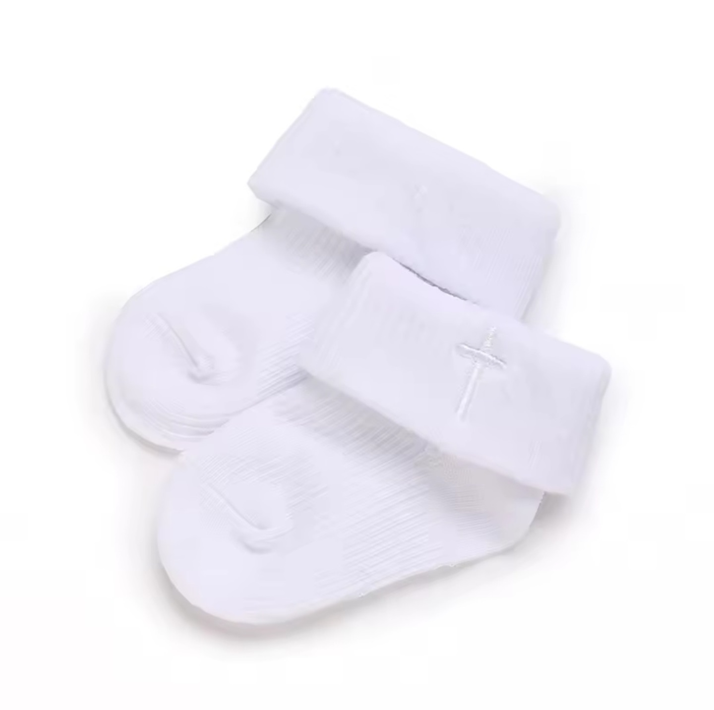 - Product Name: Baby Christening Socks (White with White Cross)