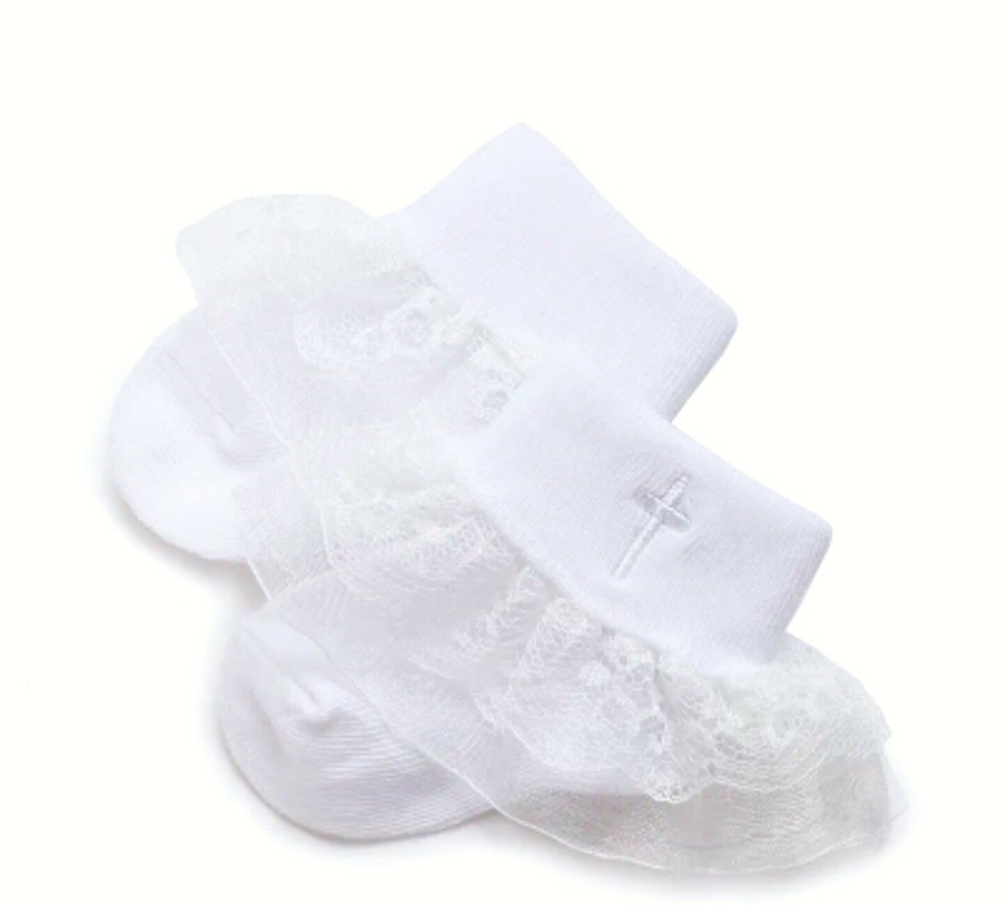 - Product Name: Baby Lace Christening Socks (White with White Cross)