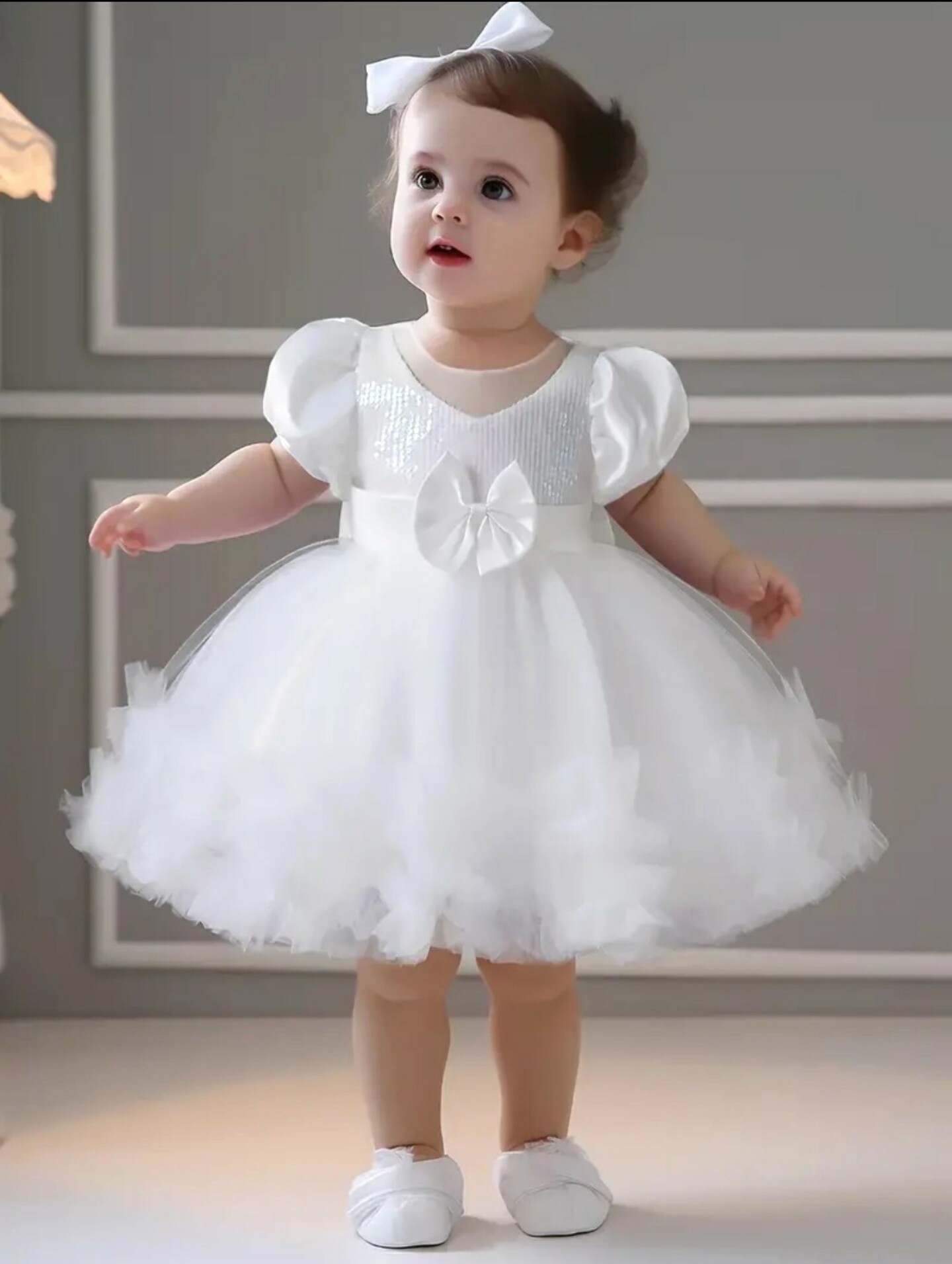 Baby Sequin Party Dress - Jojo (White)