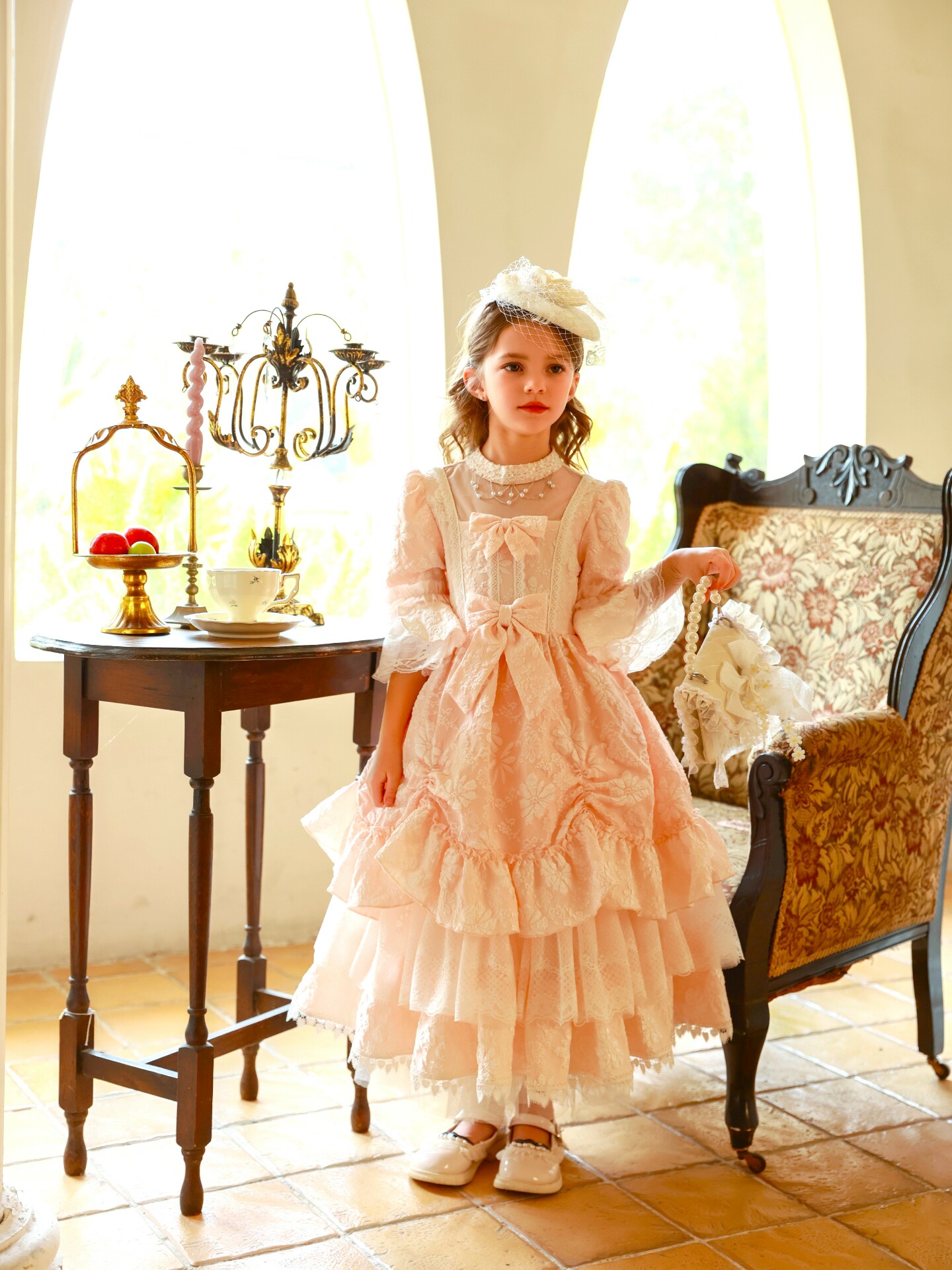 Presenting our European Royal Flower Girl Bridesmaid Dress, perfect for weddings and birthday parties. Expertly tailored from superior quality fabric and exhibiting meticulous handwork, this dress exudes a captivating charm. The rich peach color adds to its attractiveness, making your little princess the belle of any event.