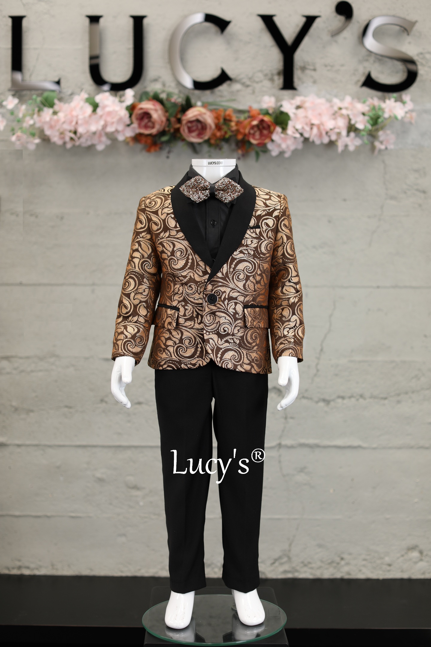 Make your little gentleman shine in our tailored Bronze/Brown Tuxedo for boys.
