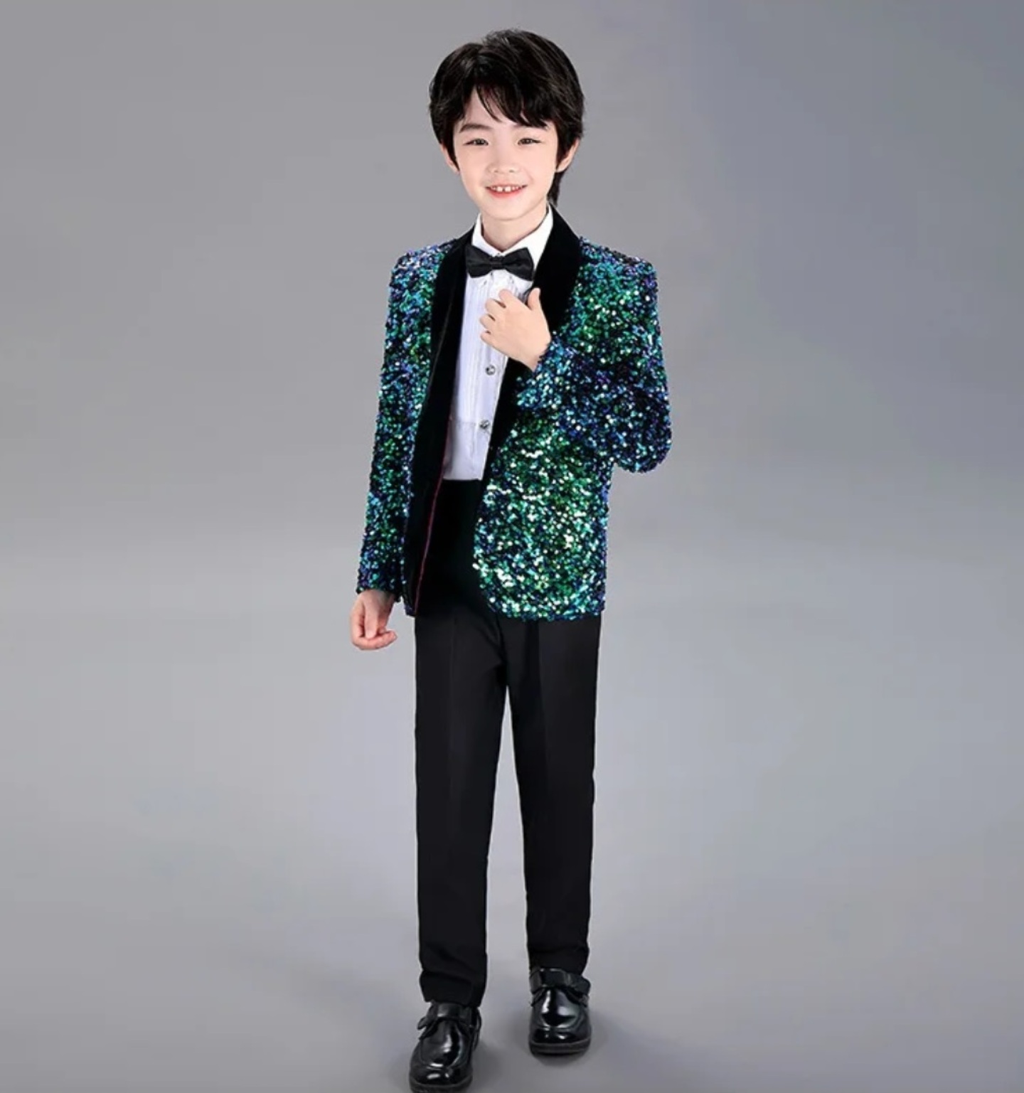 Boys 2pc Green Blue Sequin Tuxedo Suit - MJ25 (Performance Show & Party)
