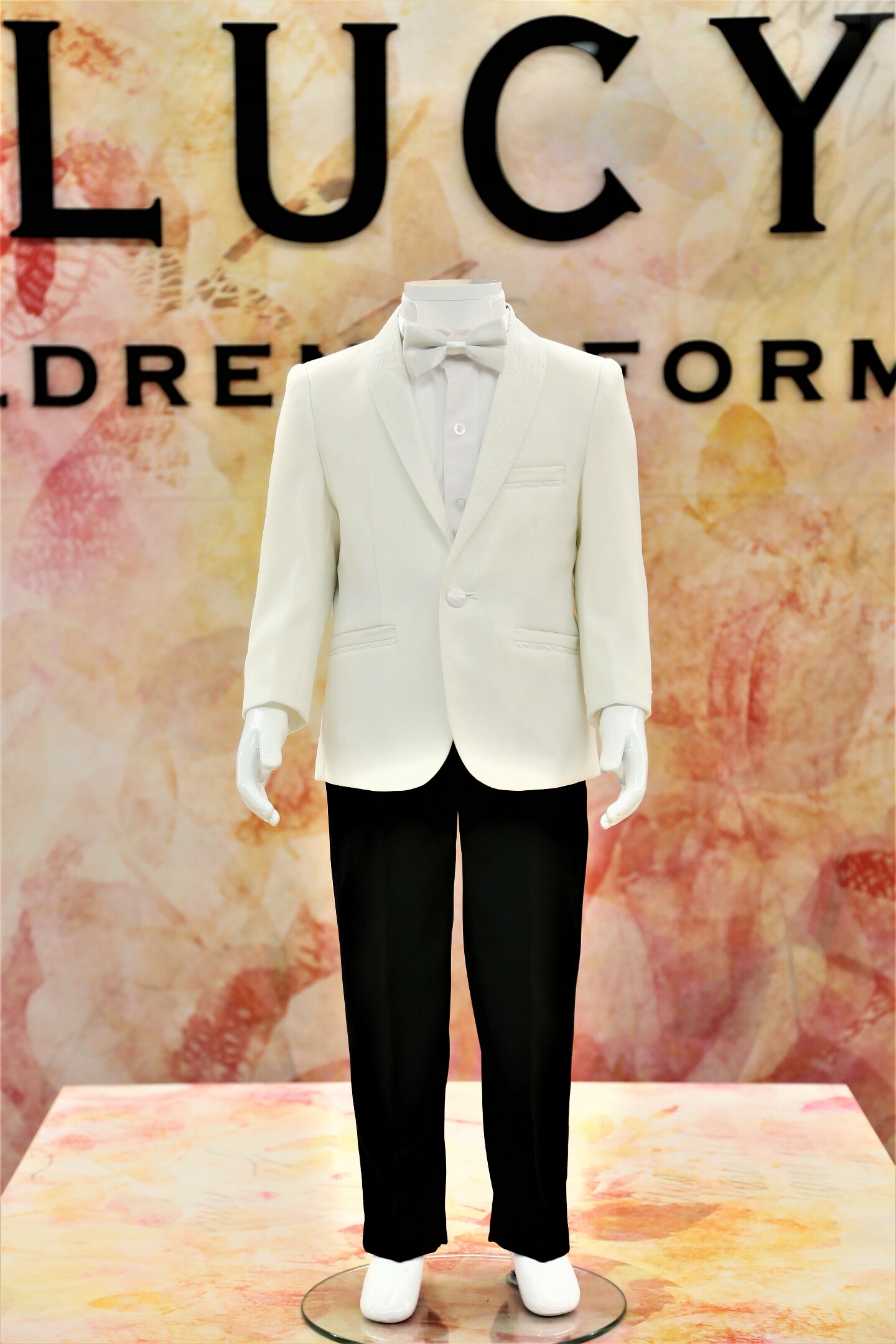 Boys 2pc Ivory/Black Premium Tailored Tuxedo - Abraham/Jacob