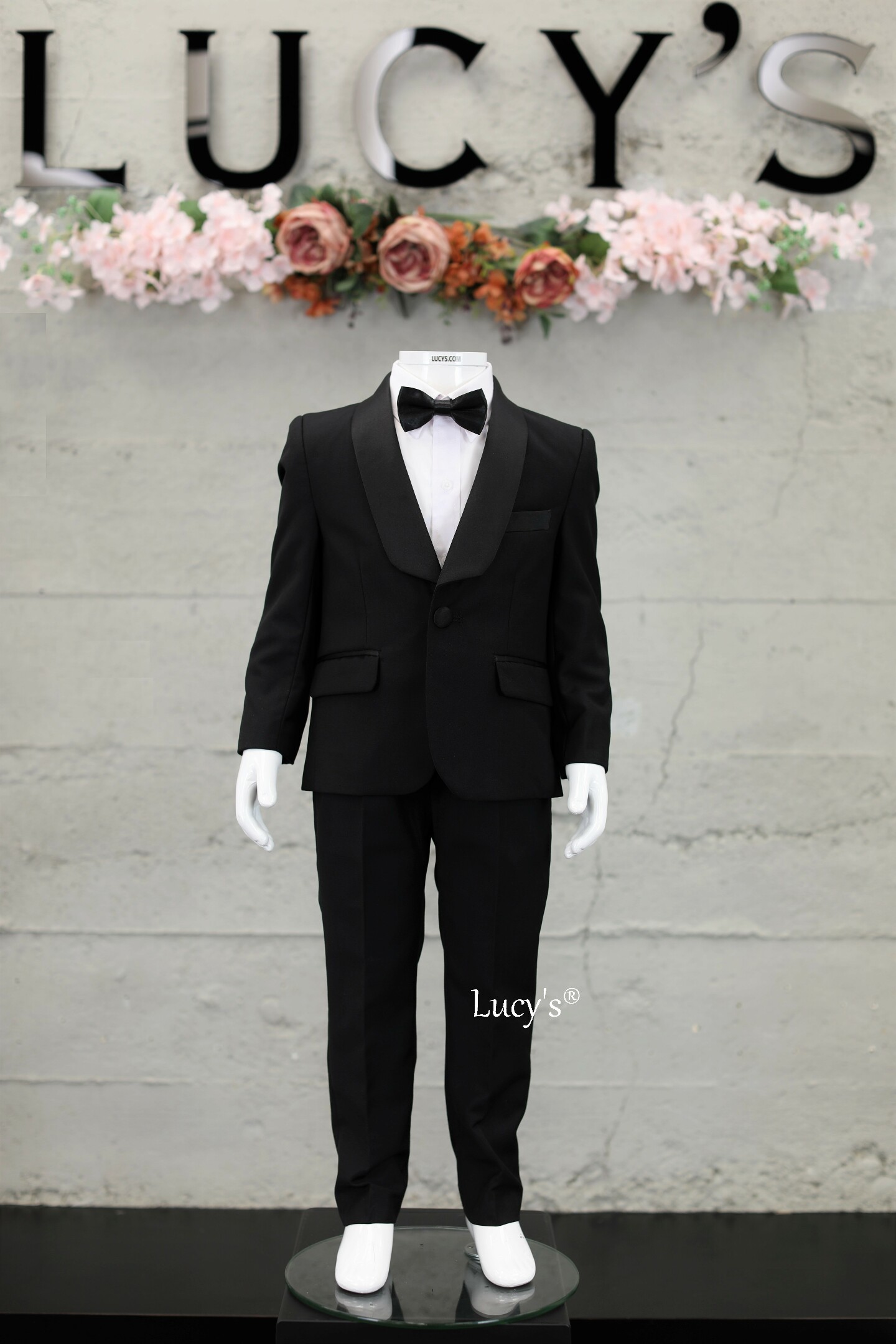 The Lucy’s boys black tuxedo is a classic, camera‑ready ensemble designed for formal moments that matter. Defined by its smooth satin lapels and sharp monochrome palette, this set delivers a polished look for page boys, ring bearers, and young gentlemen attending black‑tie events.