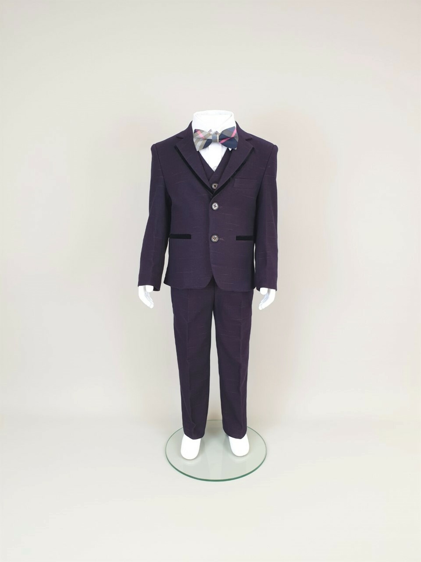 Boys 3pc Amaranth Check Premium Tailored Suit - David