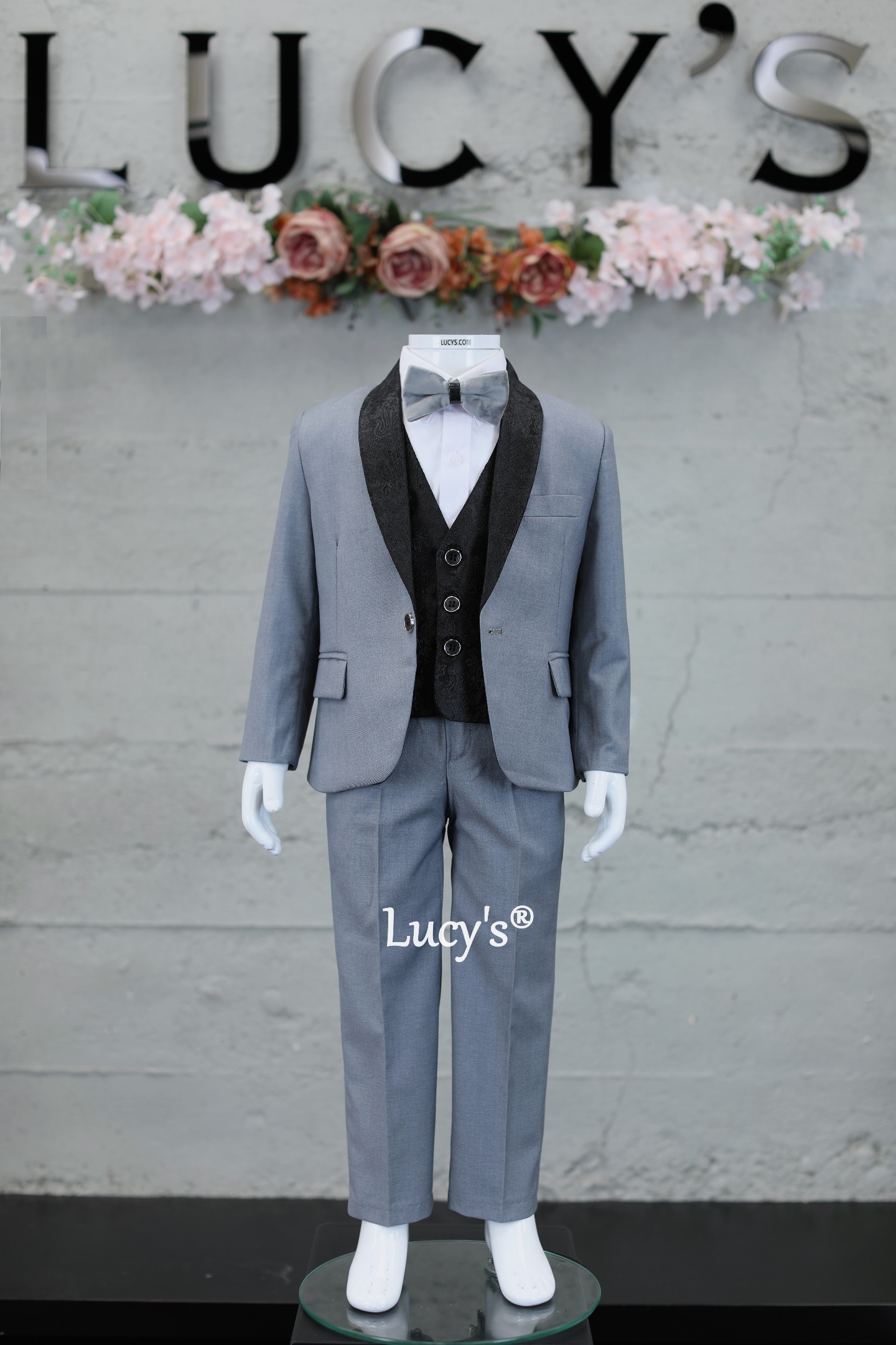 Boys 3pc Grey Classic Tailored Tuxedo - Ricardo