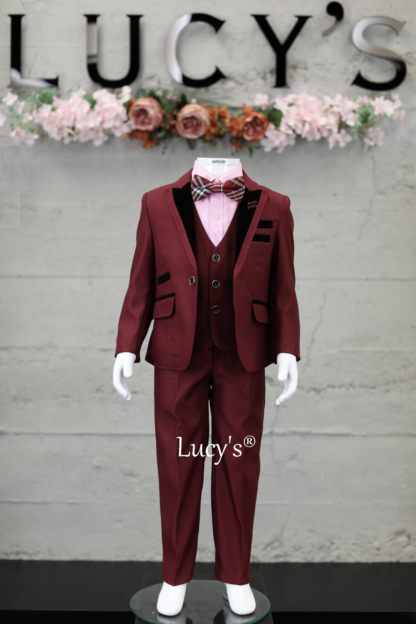 Boys 3pc Maroon Classic Tailored Suit - Monte Carlo