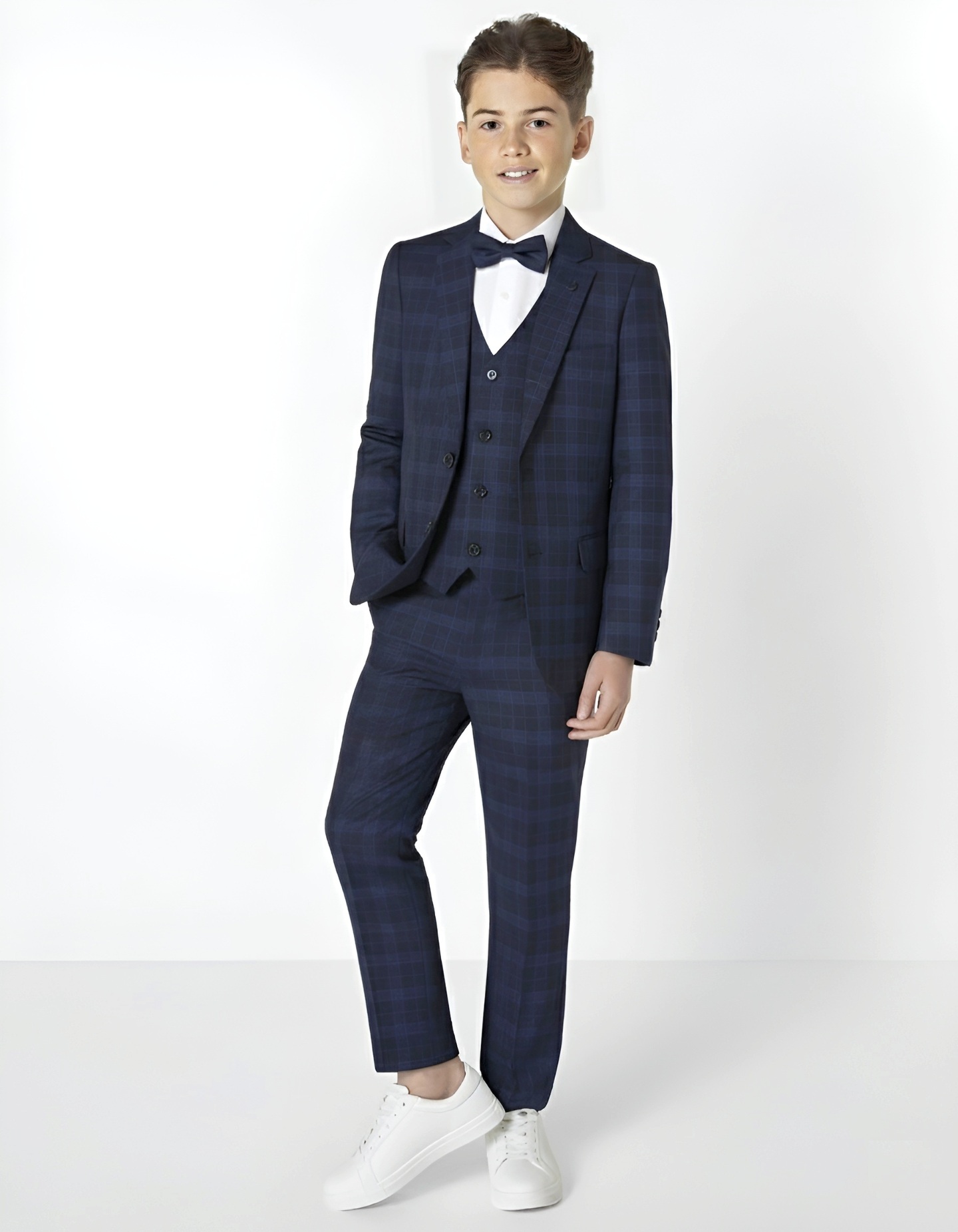 Boys 3pc Premium Navy Blue Plaid Formal Suit for Special Occasion - William | Lucy's