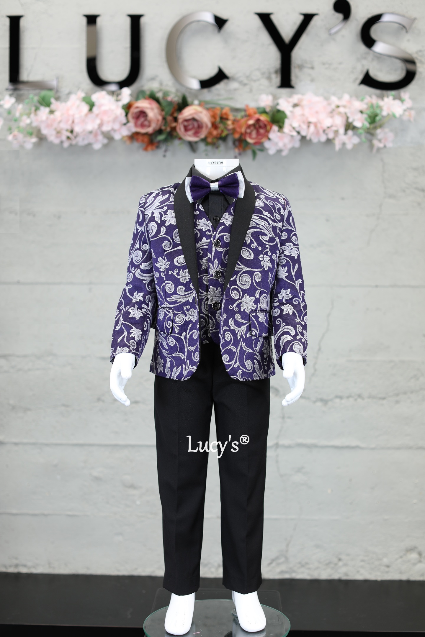 Make your little gentleman shine in our tailored Purple/Grey Tuxedo for boys.