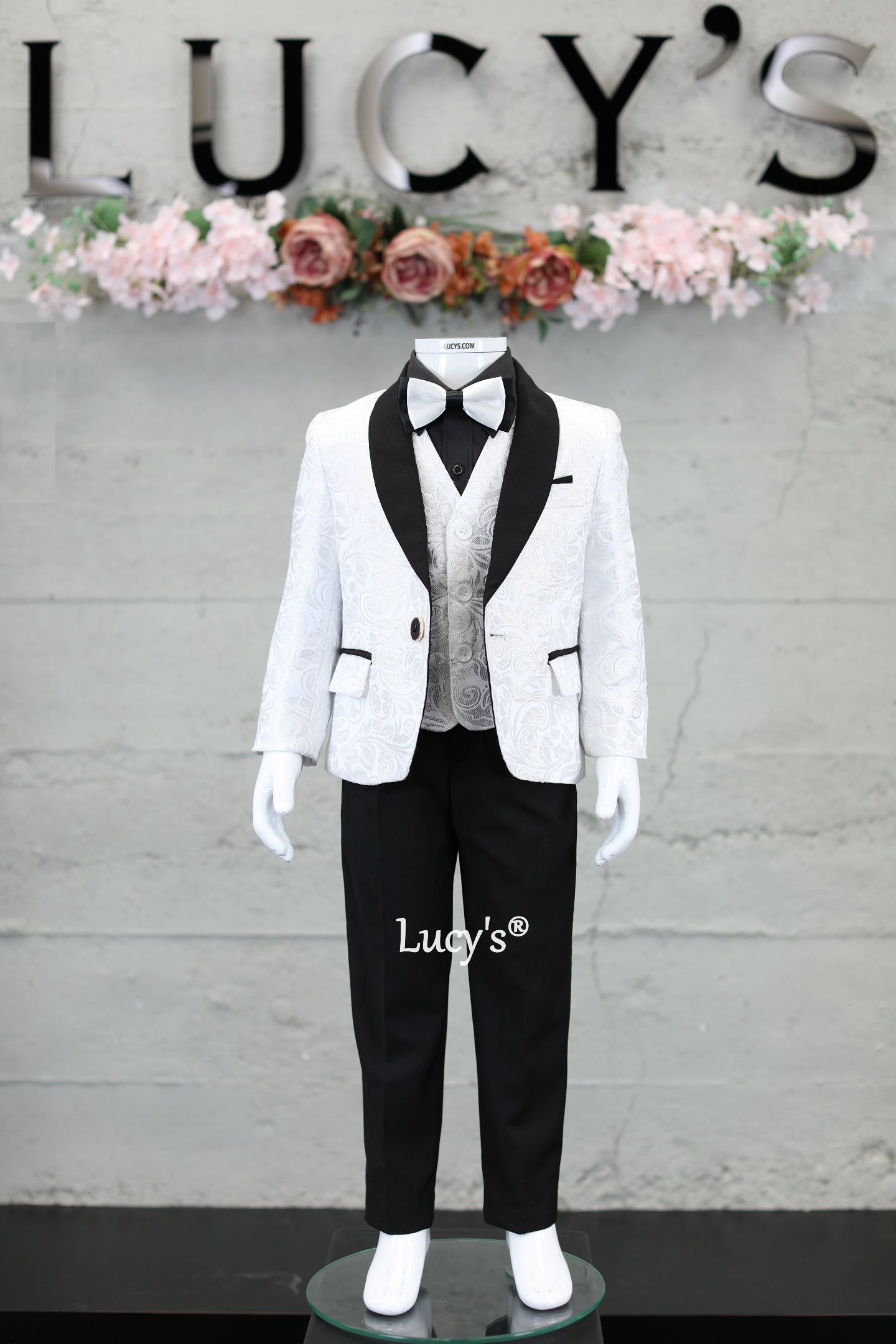 Make your little gentleman shine in our tailored White Tuxedo for boys.