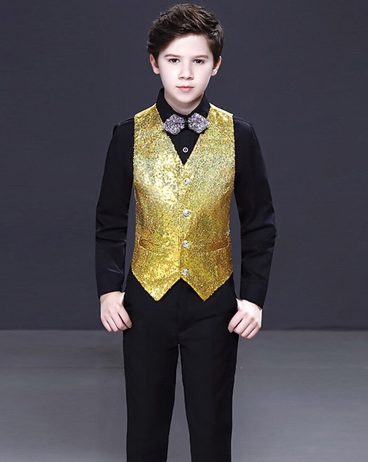 Boys Gold Sequin Waistcoat - MJ8 (Performance Show & Party)