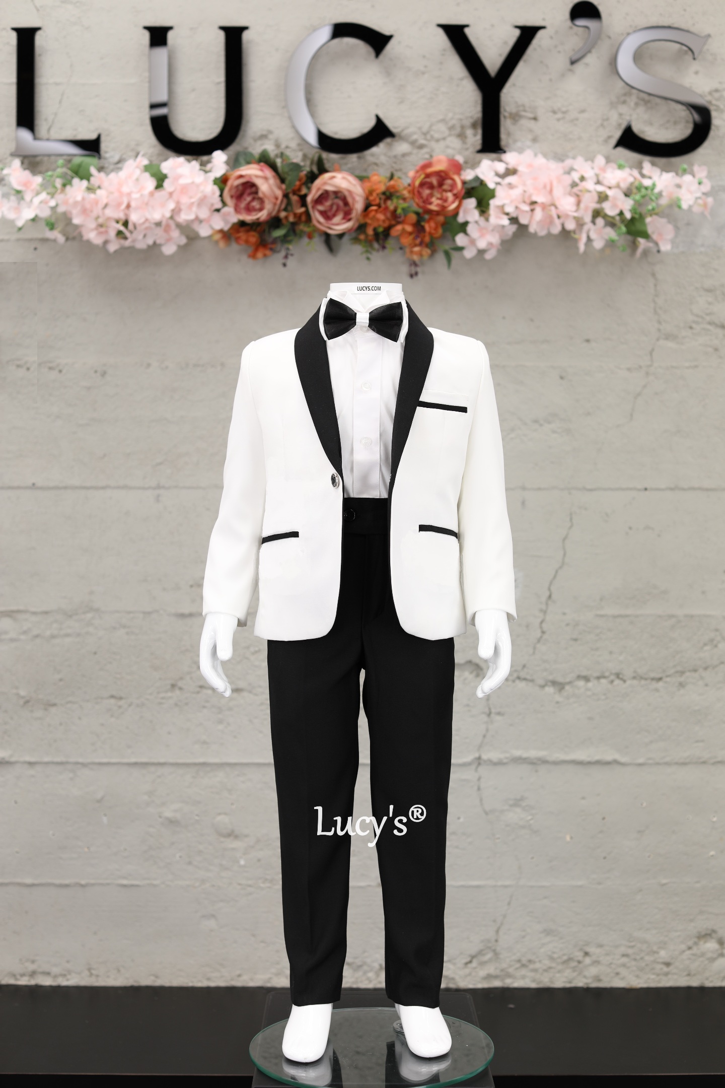 Boys Ivory/Black Classic Tailored Tuxedo Blazer - Fernando