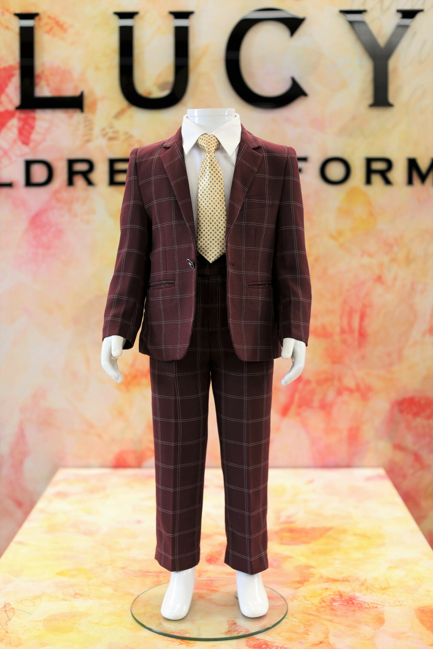 Boys Maroon Check Premium Tailored Suit Jacket - Truman