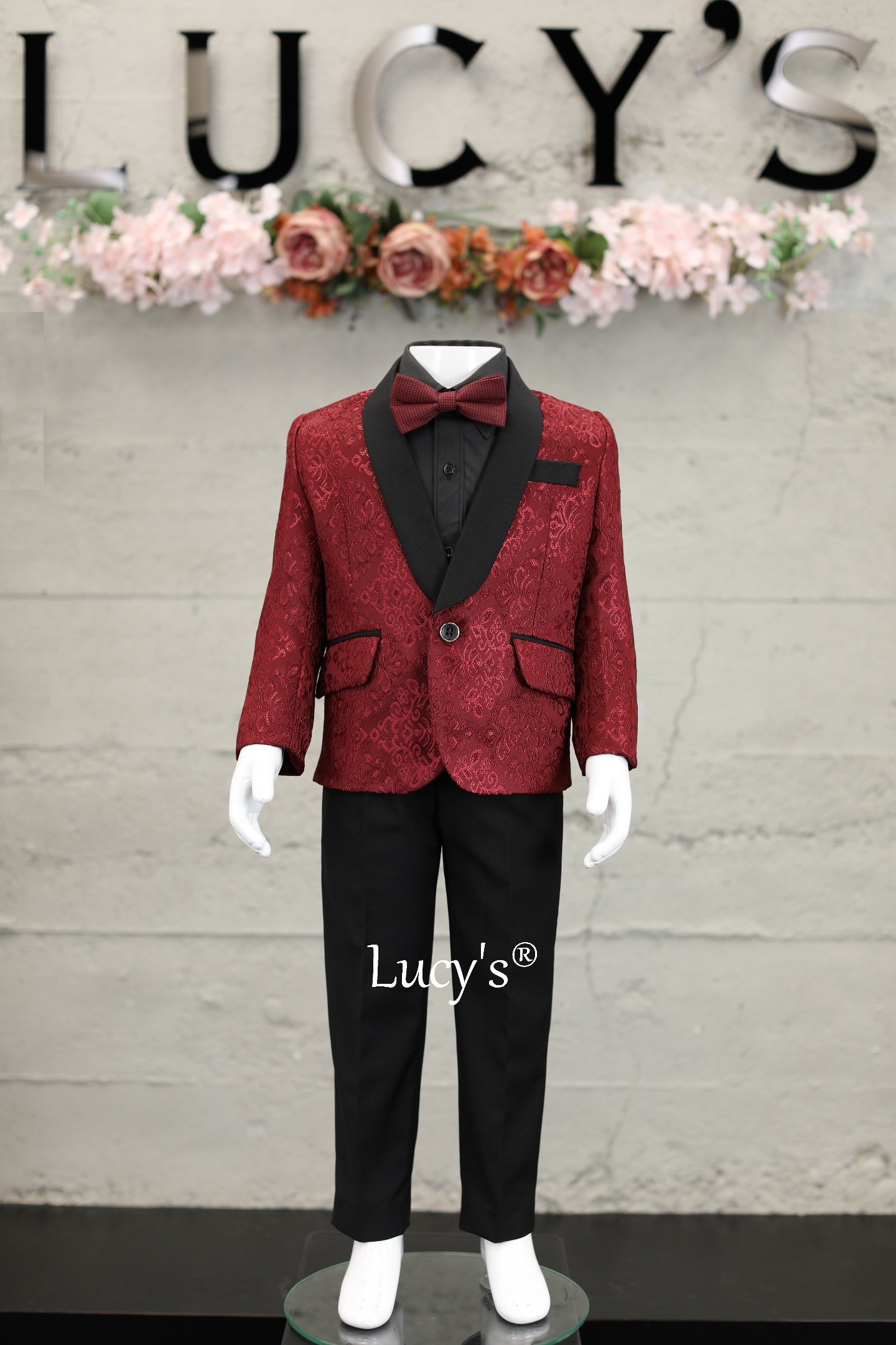 Make your little gentleman shine in our tailored Maroon Tuxedo for boys.