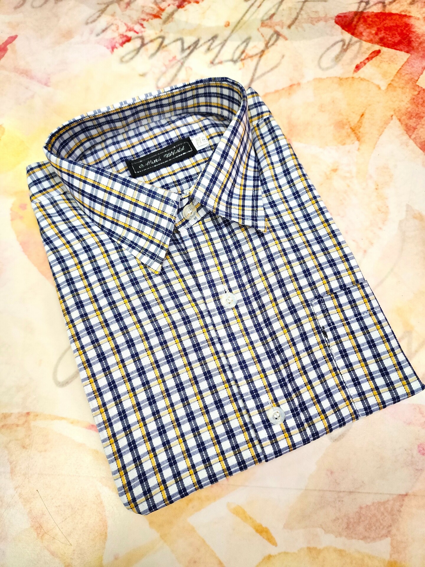 - Product Name: Boys Yellow, Navy, White, Check Shirt