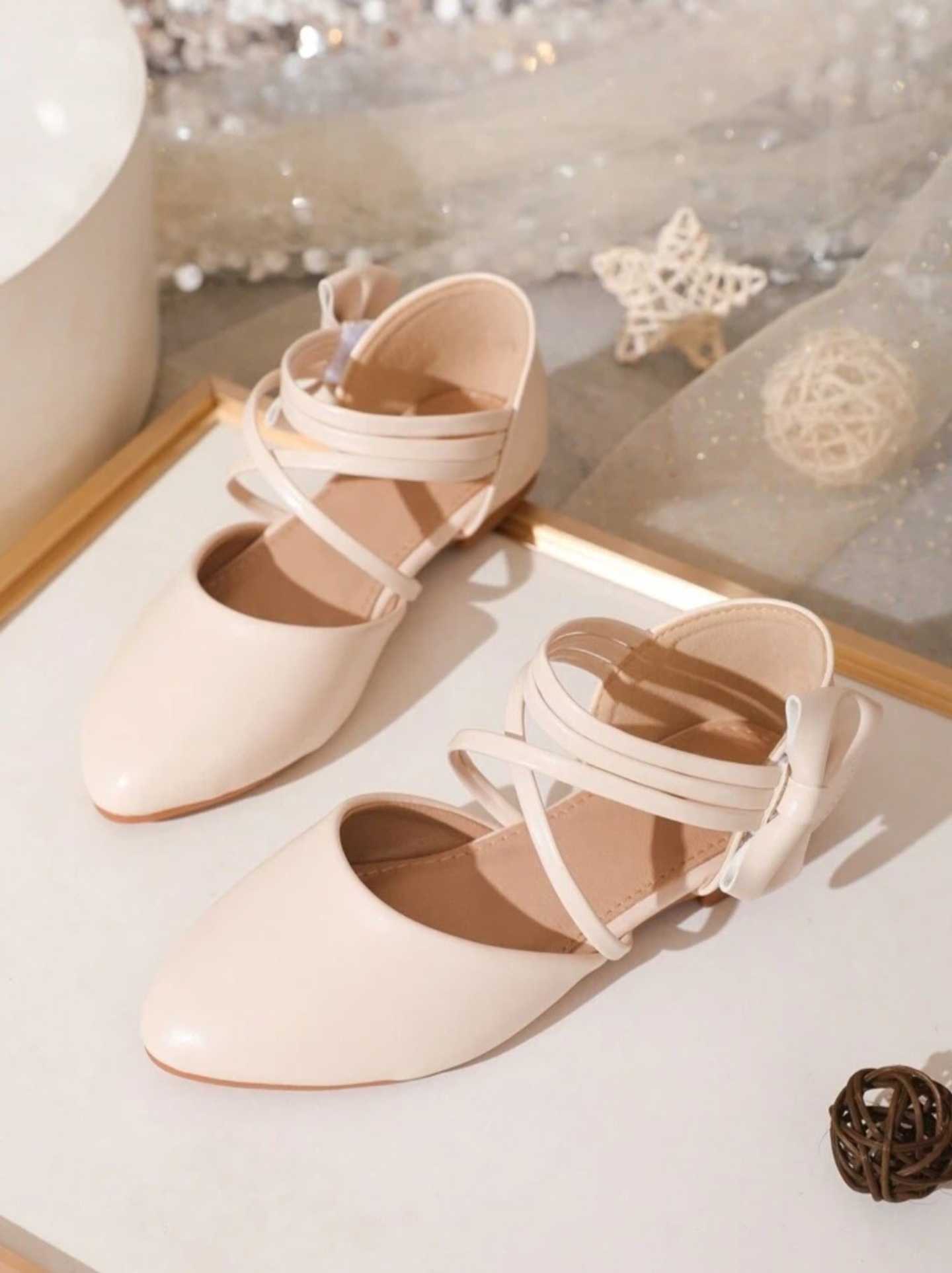- Product Name: Children Girls Flat Shoes Crossed Straps Decorated (Nude)