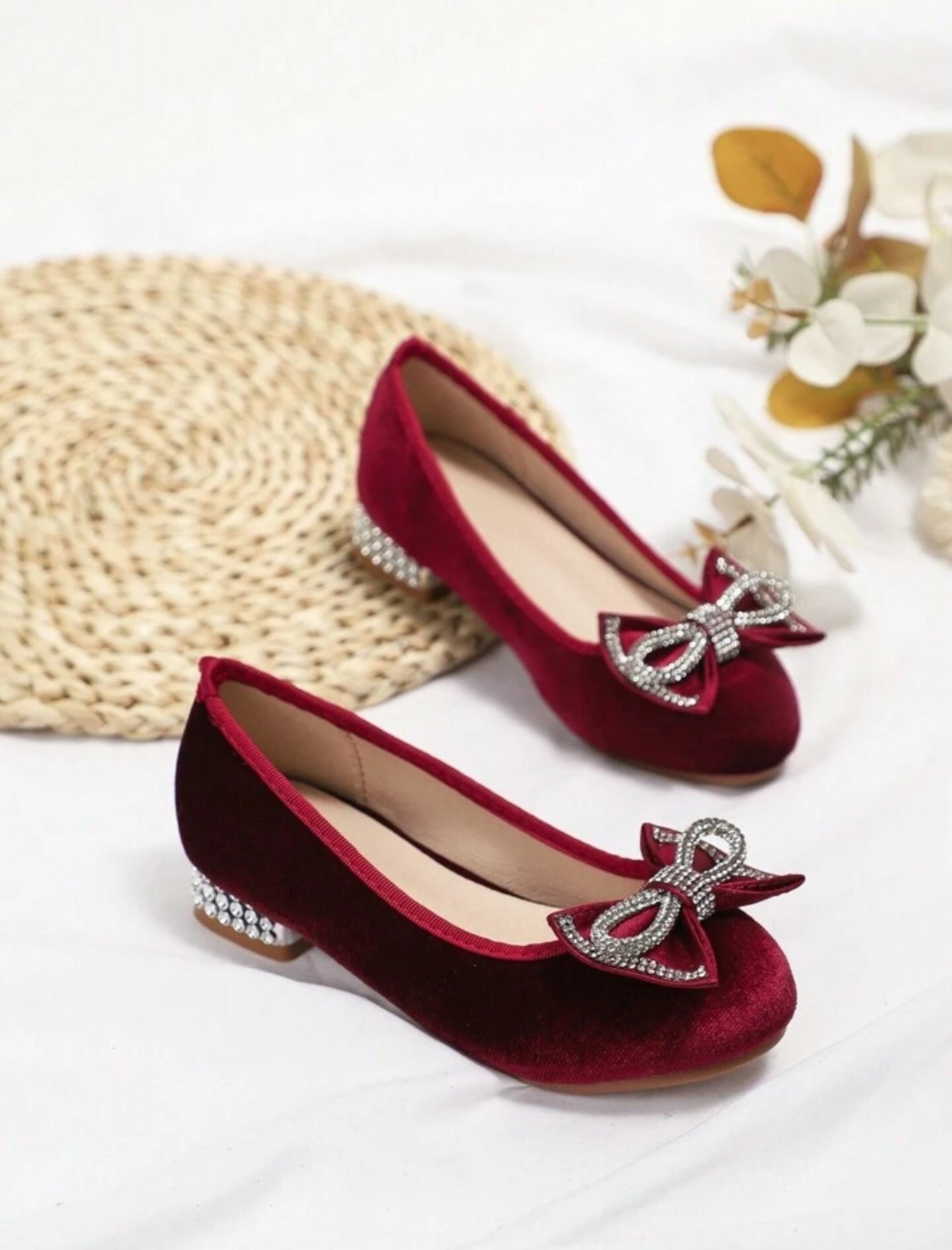 - Product Name: Children Girls Dress Shoes Diamond Bow Decorated (Maroon