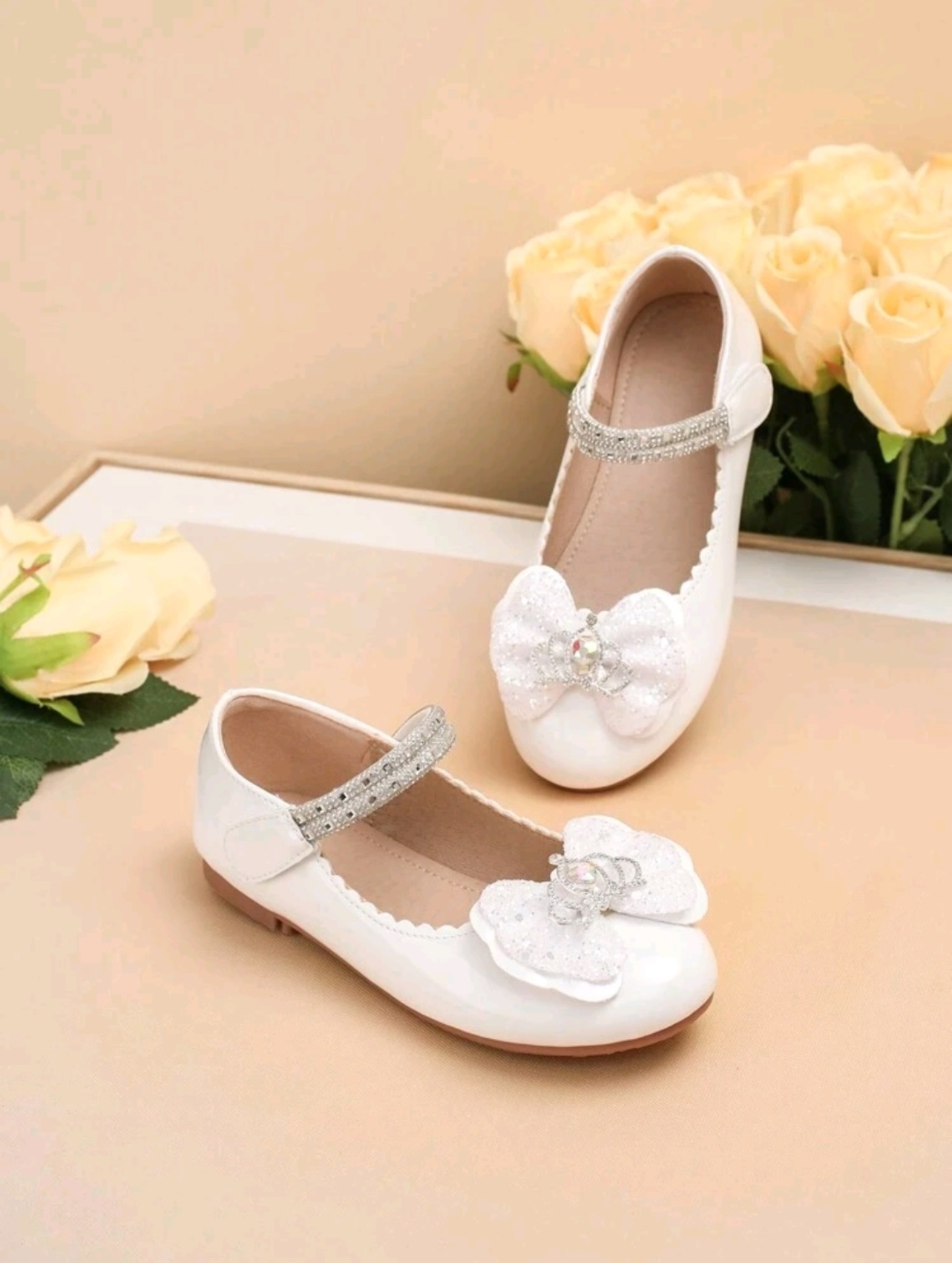 - Product Name: Children Girls Dress Shoes with Butterfly Crown (White)