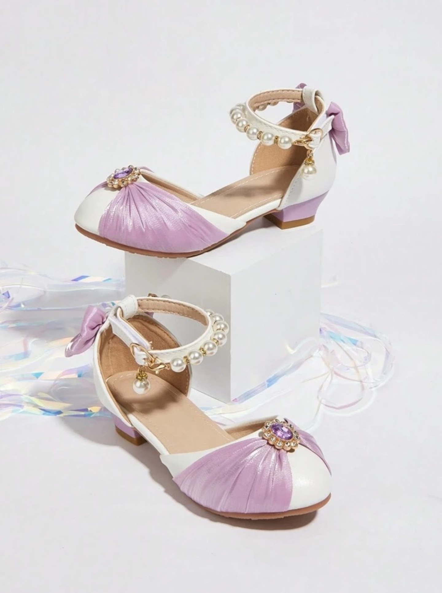 - Product Name: Children Girls High Heel Shoes Rhinestone Decorated (Violet/White)