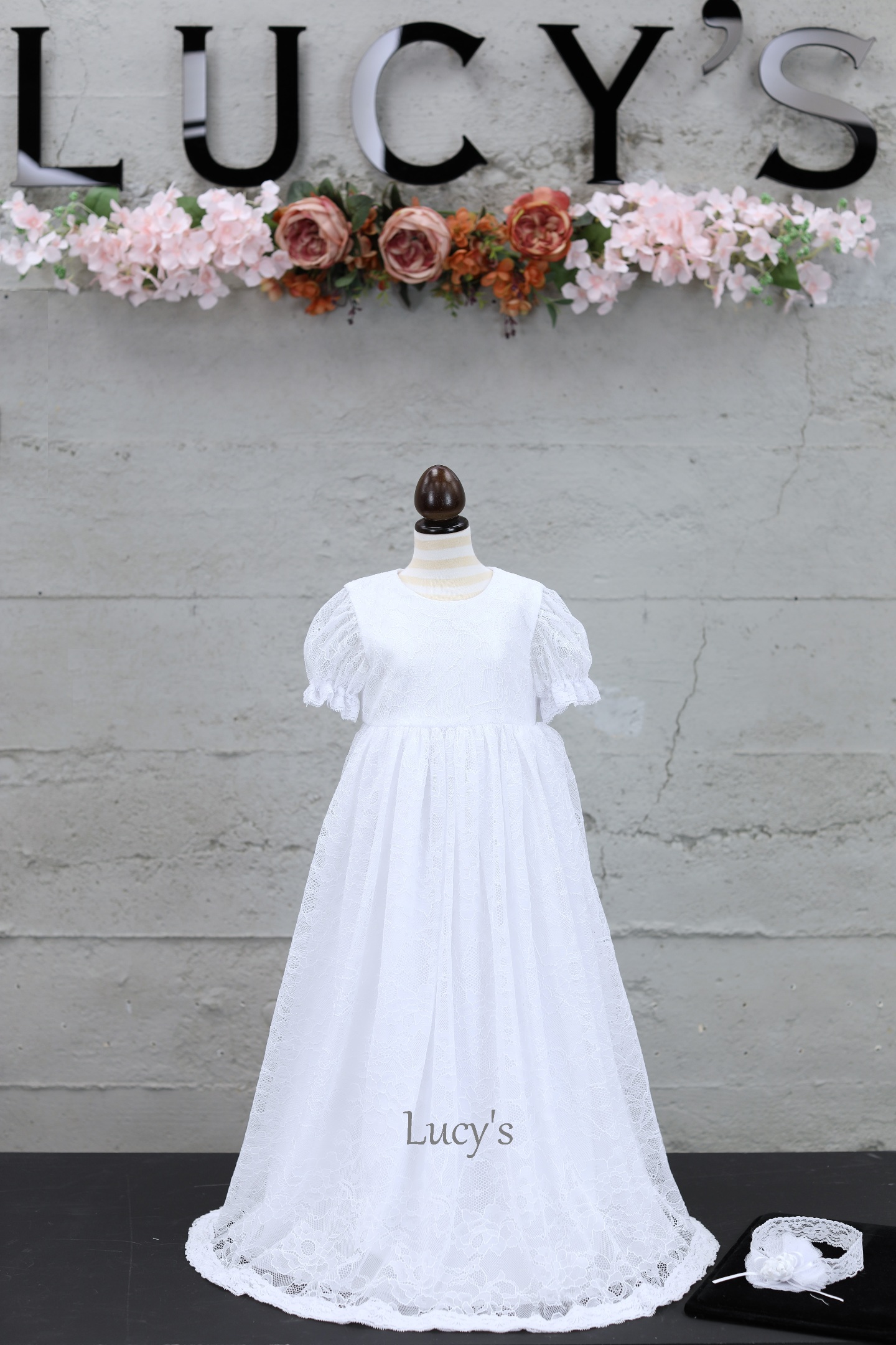 Delight in our Angelic Christening Gown for baby girls. Made from soft, breathable materials with exquisite lace accents, this dress ensures your little angel is comfortable and elegant for her christening.