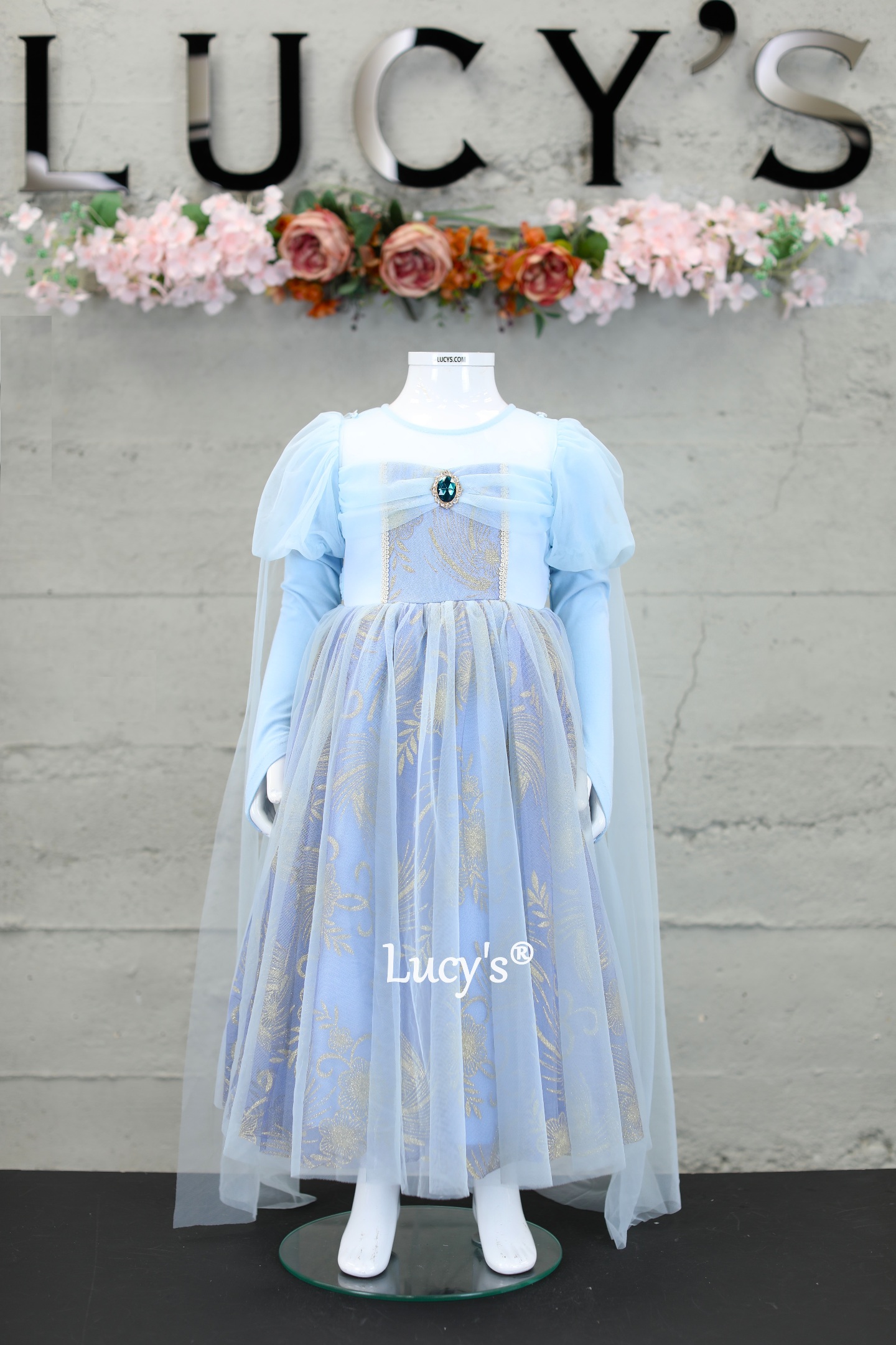 Elsa Girls Light Blue Premium Long Sleeve Flower Girl Dress & Cape - Nimble | Lucy's