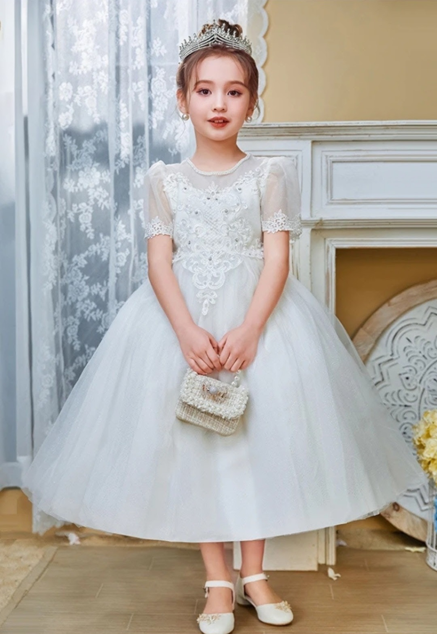Presenting our White Flower Girl Party Dress, perfect for weddings and birthday parties. Expertly tailored from superior quality fabric and exhibiting meticulous handwork, this dress exudes a captivating charm. The rich peach color adds to its attractiveness, making your little princess the belle of any event.
