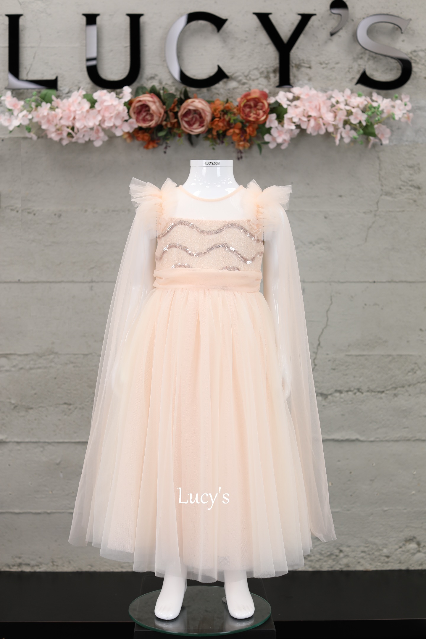 Gemma II Girls Peach Sequin Premium Flower Girl Dress - Nimble | Lucy's