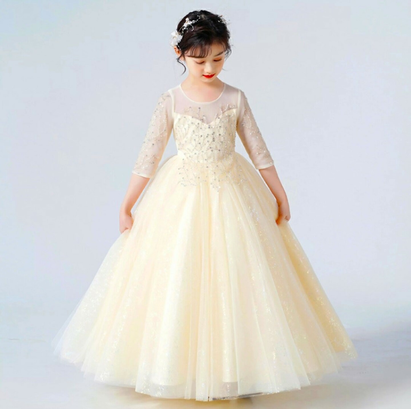 Girl's Long Sleeve Party Dress - Amy (Champagne)