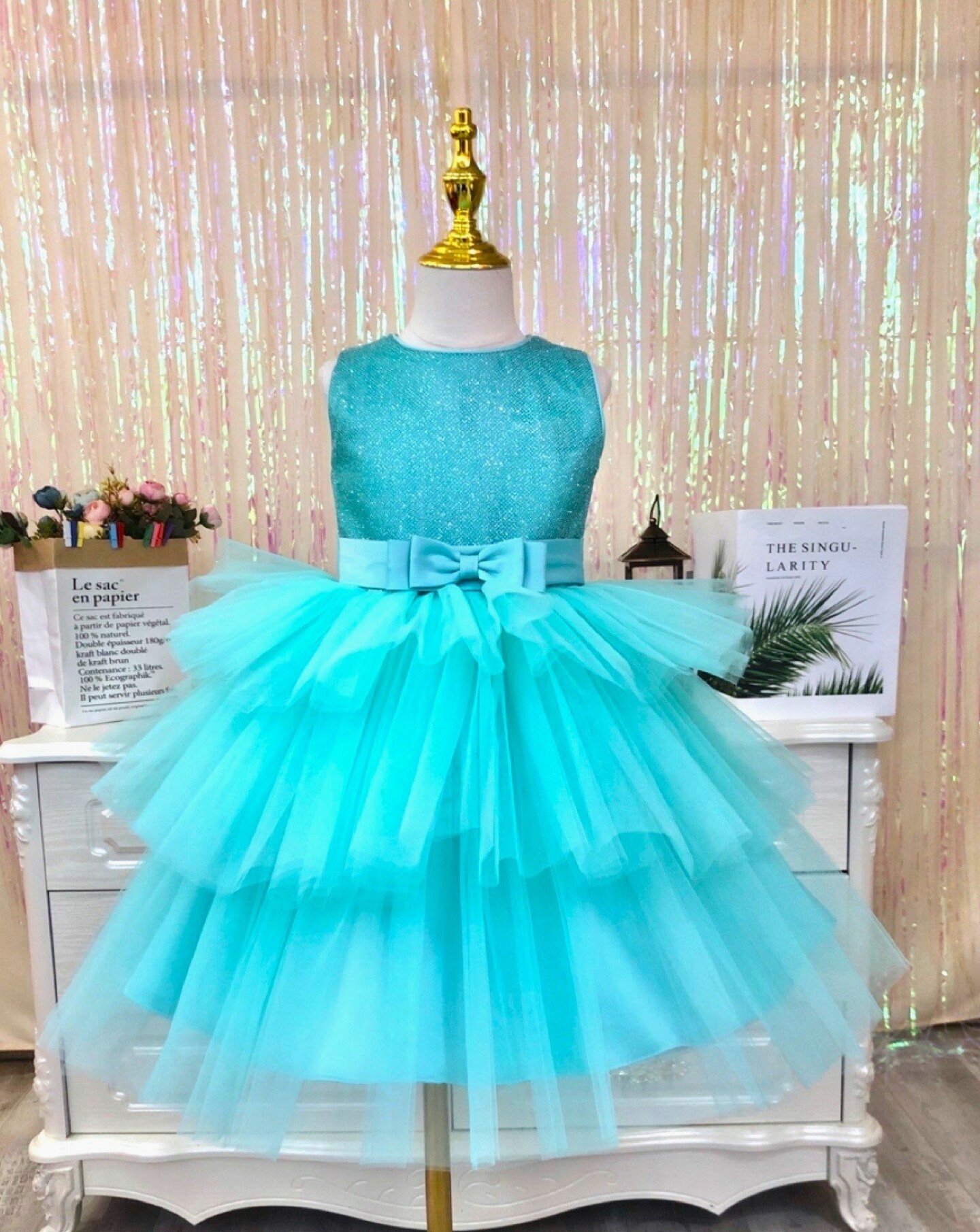 Girl's Party Dress - Gloria (Aqua Blue)