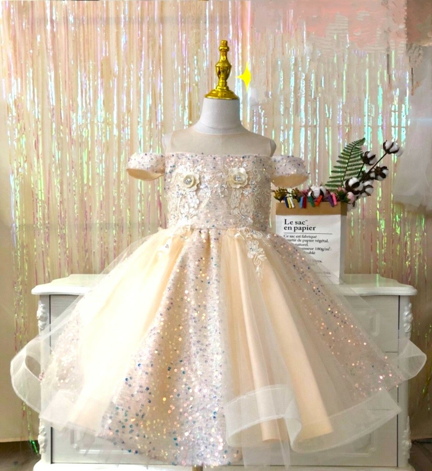 Girl's Sequin Party Dress - Sherry (Champagne)