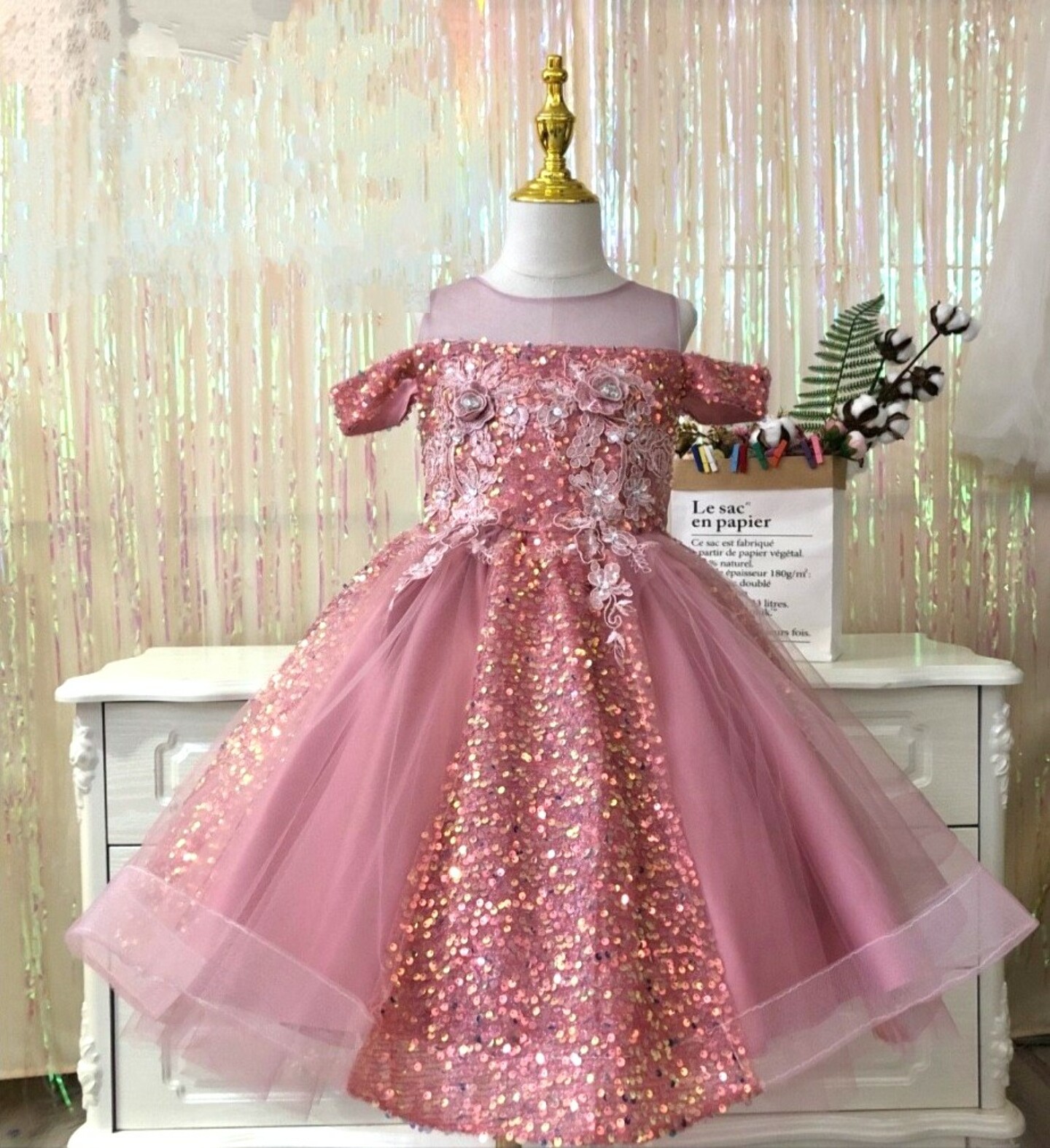 Girl's Sequin Party Dress - Sherry (Dusty Pink)