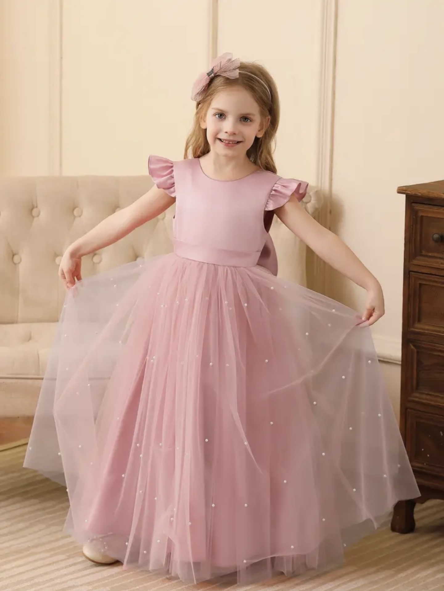 Girls Bridesmaid Dress Longer Length - Jacqueline (Dusty Pink)