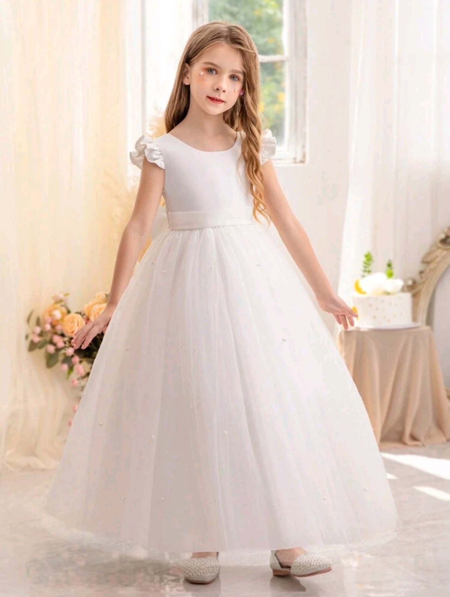 Girls Bridesmaid Dress Longer Length - Jacqueline (White)
