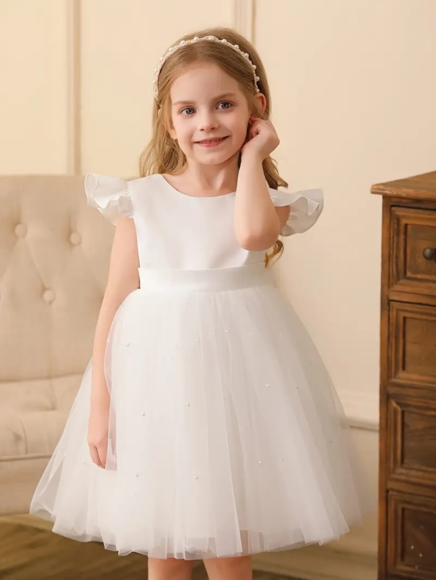 Girls Bridesmaid Dress Shorter Length - Jacqueline (White)