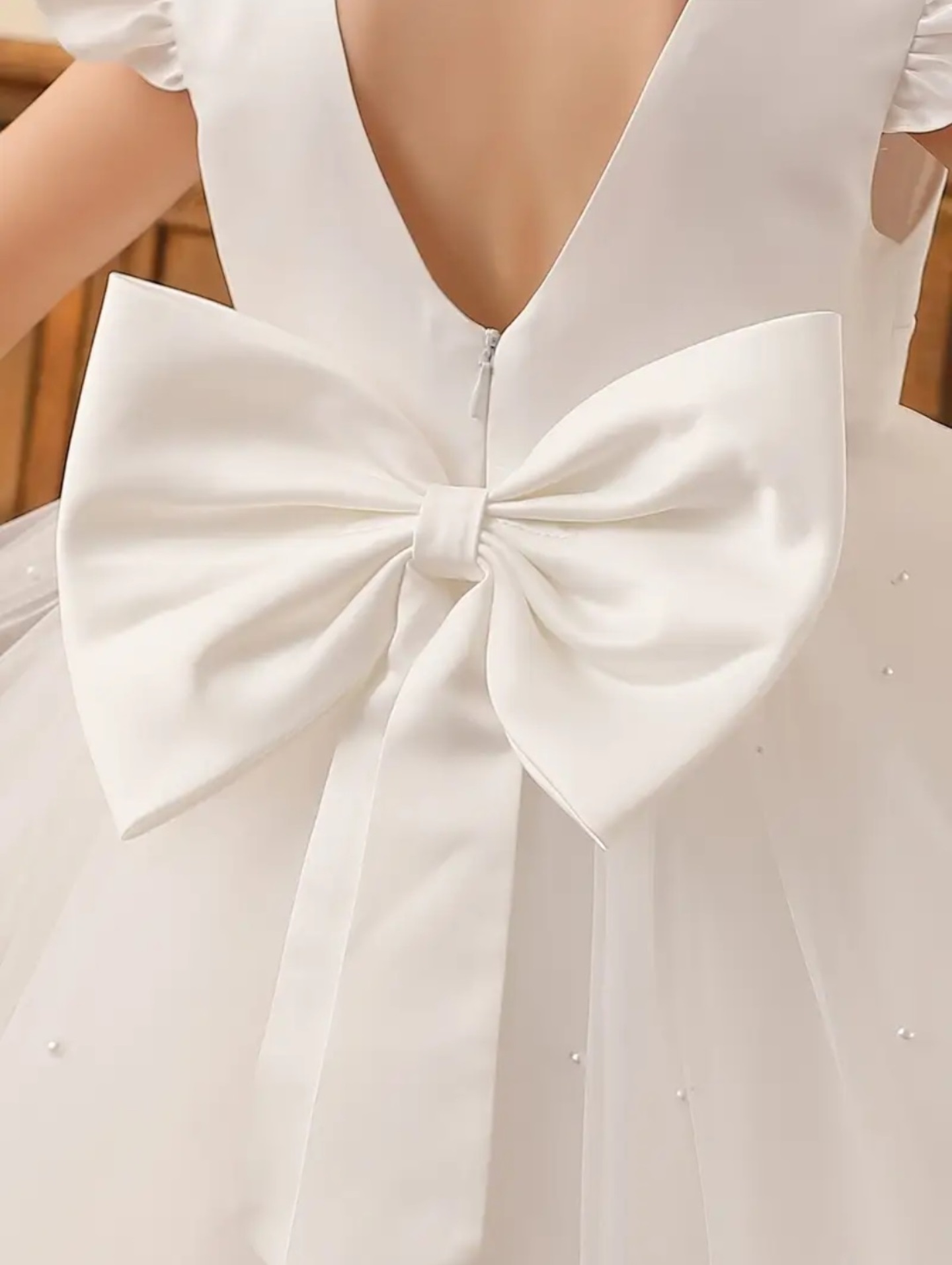Girls Bridesmaid Dress Shorter Length - Jacqueline (White)