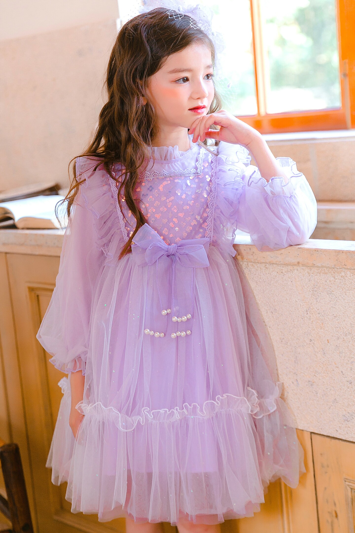 Girls Classic Long Sleeve Dress - Lesley (Purple)