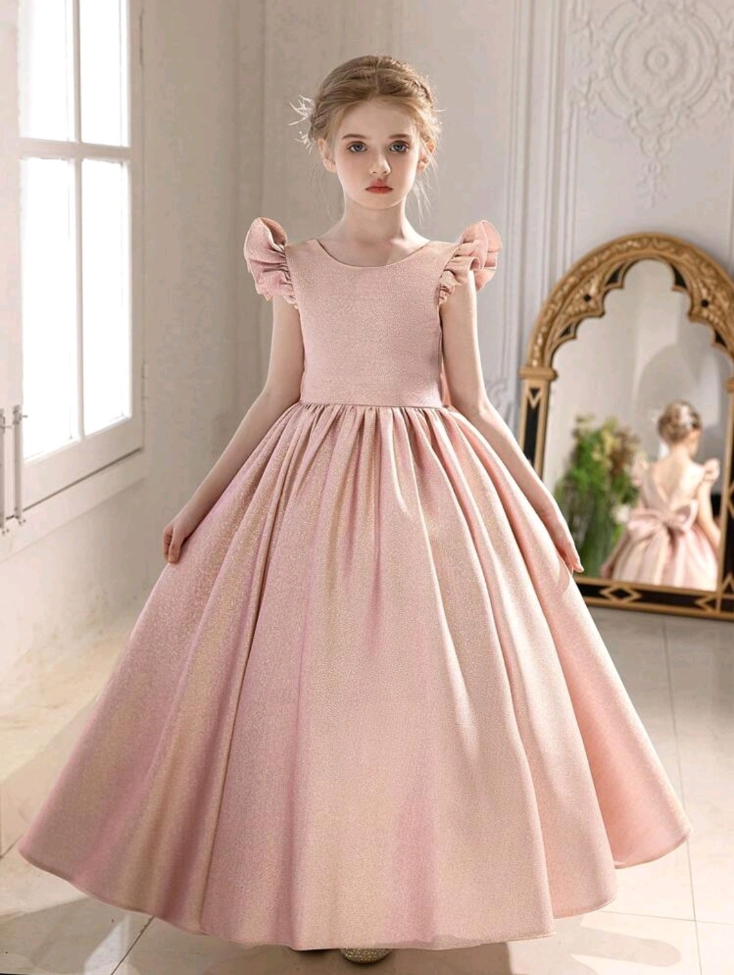 Girls Flower Girls Bridesmaid Dress - Athena (Champagne Pink)