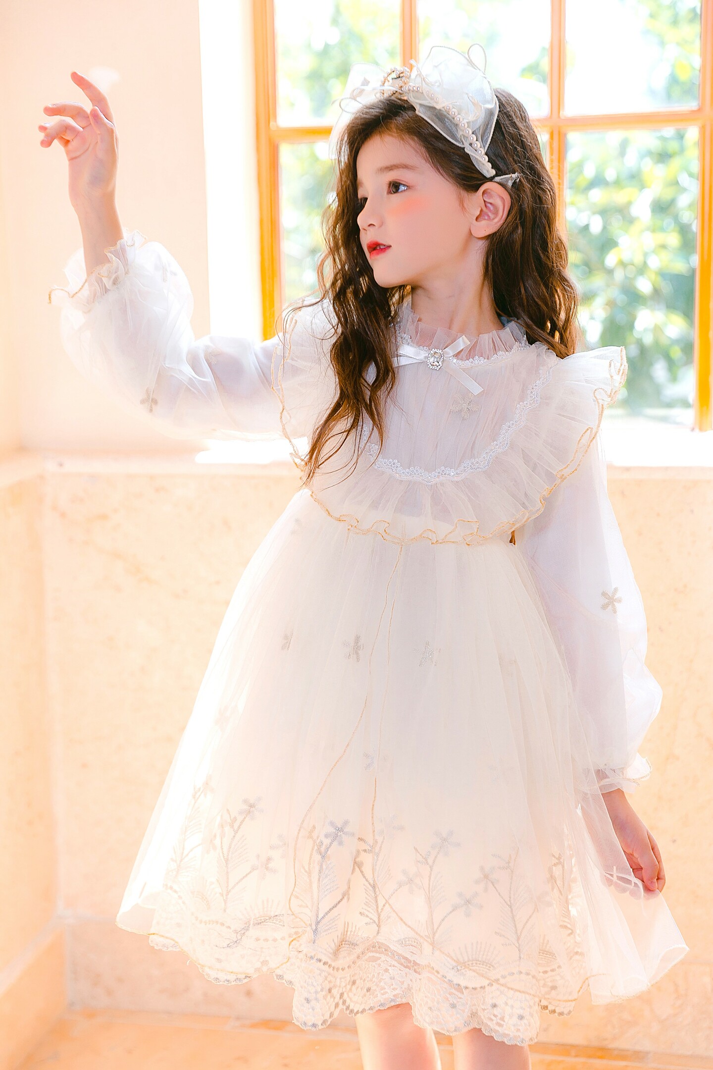 Girls Ivory Classic Long Sleeve Dress - Erin