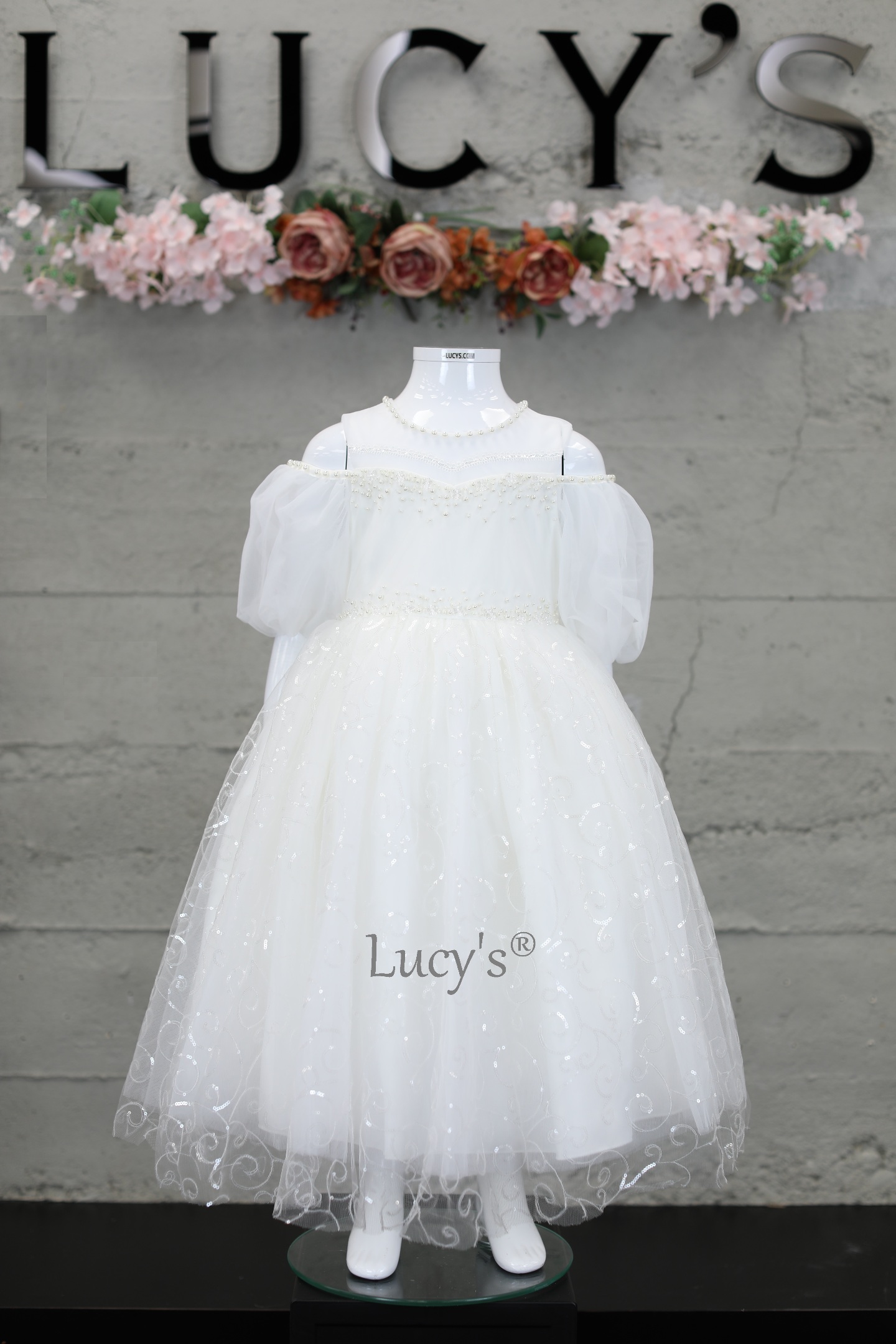 Presenting our sleeved Ivory Flower Girl Dress, perfect for weddings, First Holy Communion, White Sunday Church Event and birthday parties. This European-styled garment, crafted from premium fabric, showcases our expertise in tailoring and delicate beadwork. The classic ivory color paired with the beautiful sleeves adds a touch of elegance, making it the perfect ensemble for your little one on such special occasions.
