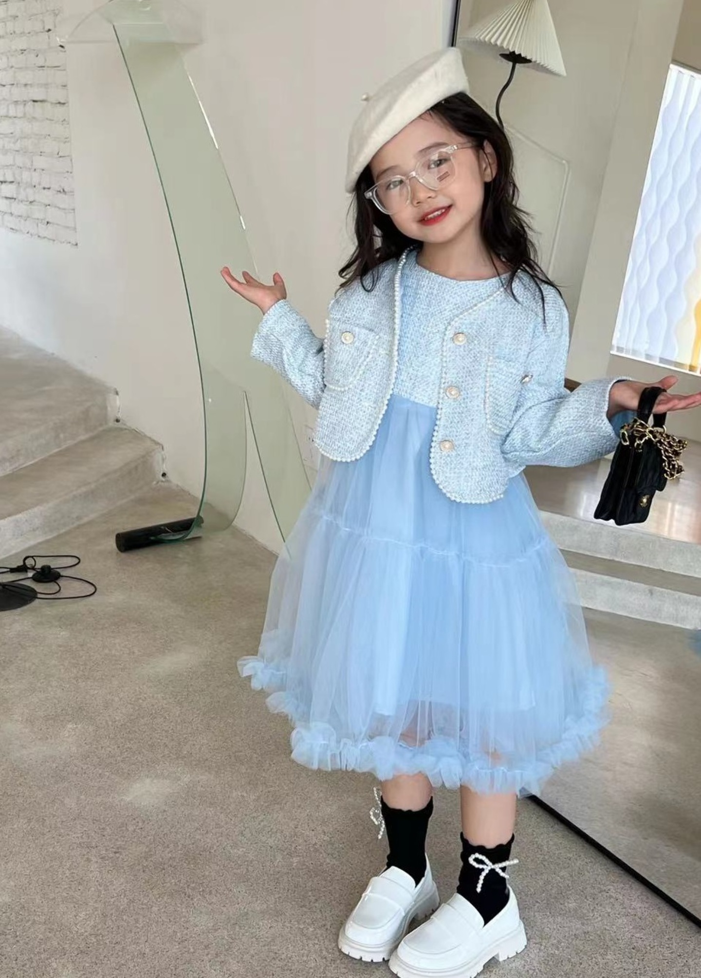 Girls Light Blue Classic Dress & Balero Set - Winifred