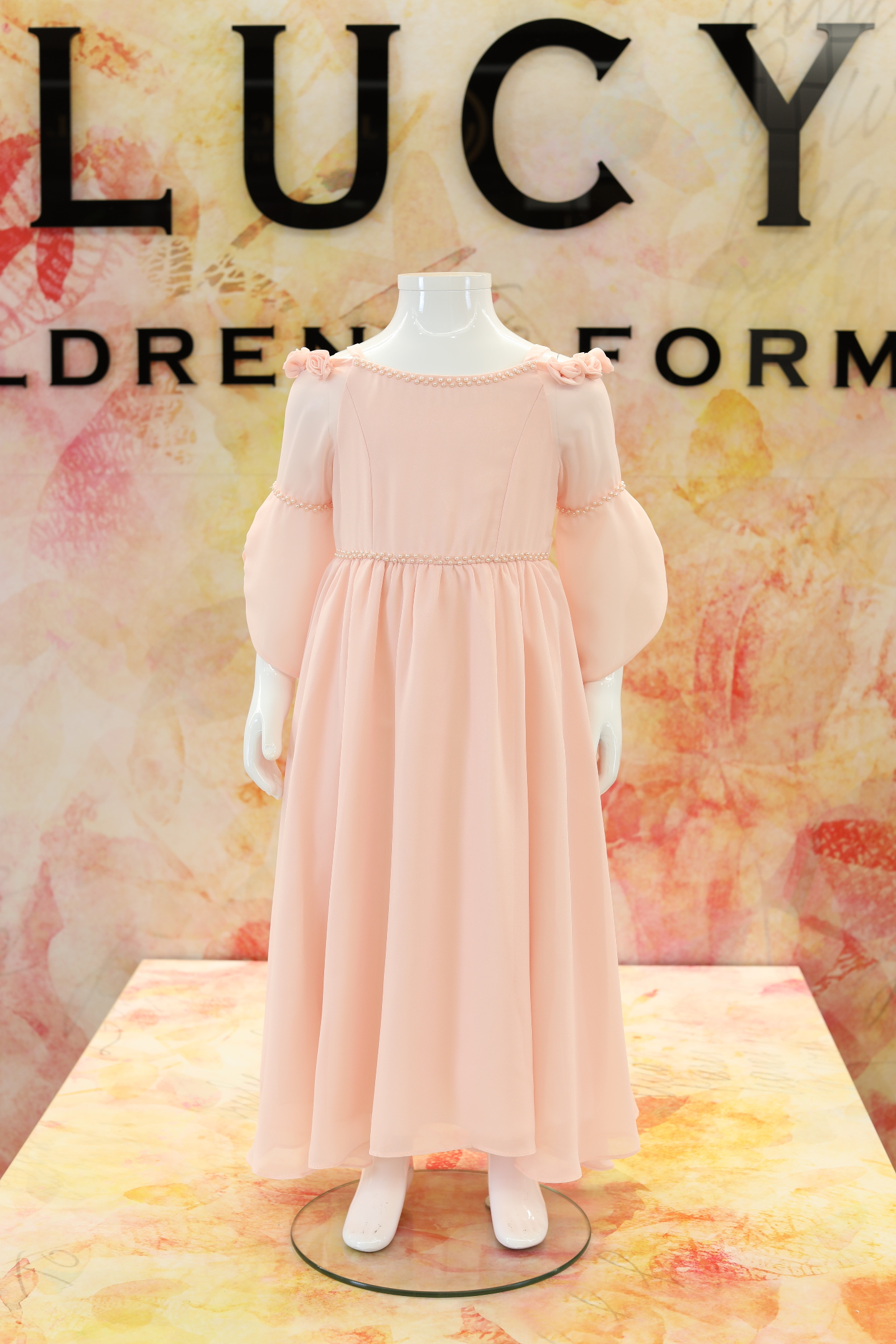 Girls Long Sleeve Peach Flower Girl Bridesmaid Dress - Andrea