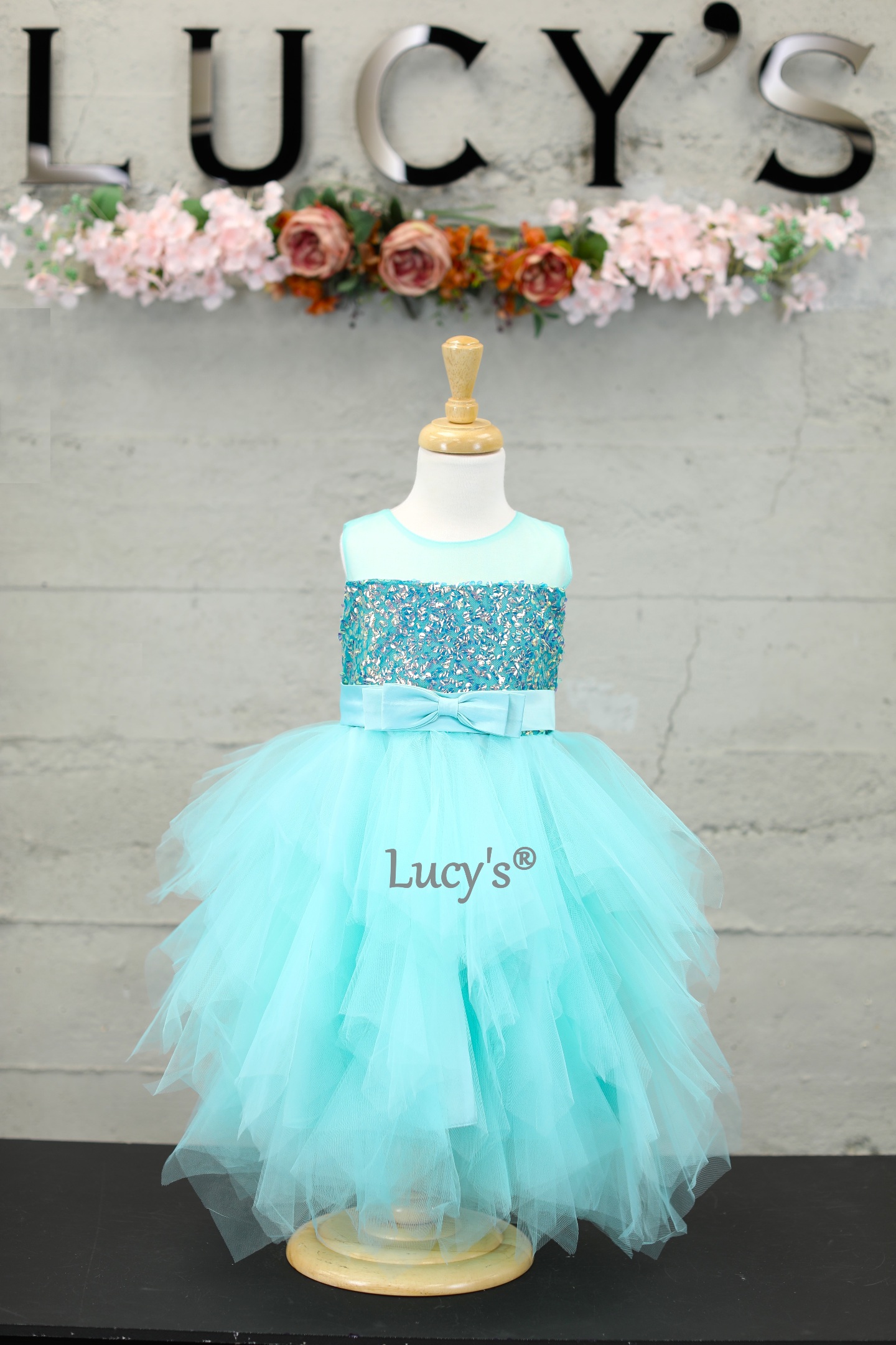 Girls Sequin Classic Party Dress - Yuri (Aqua Blue)