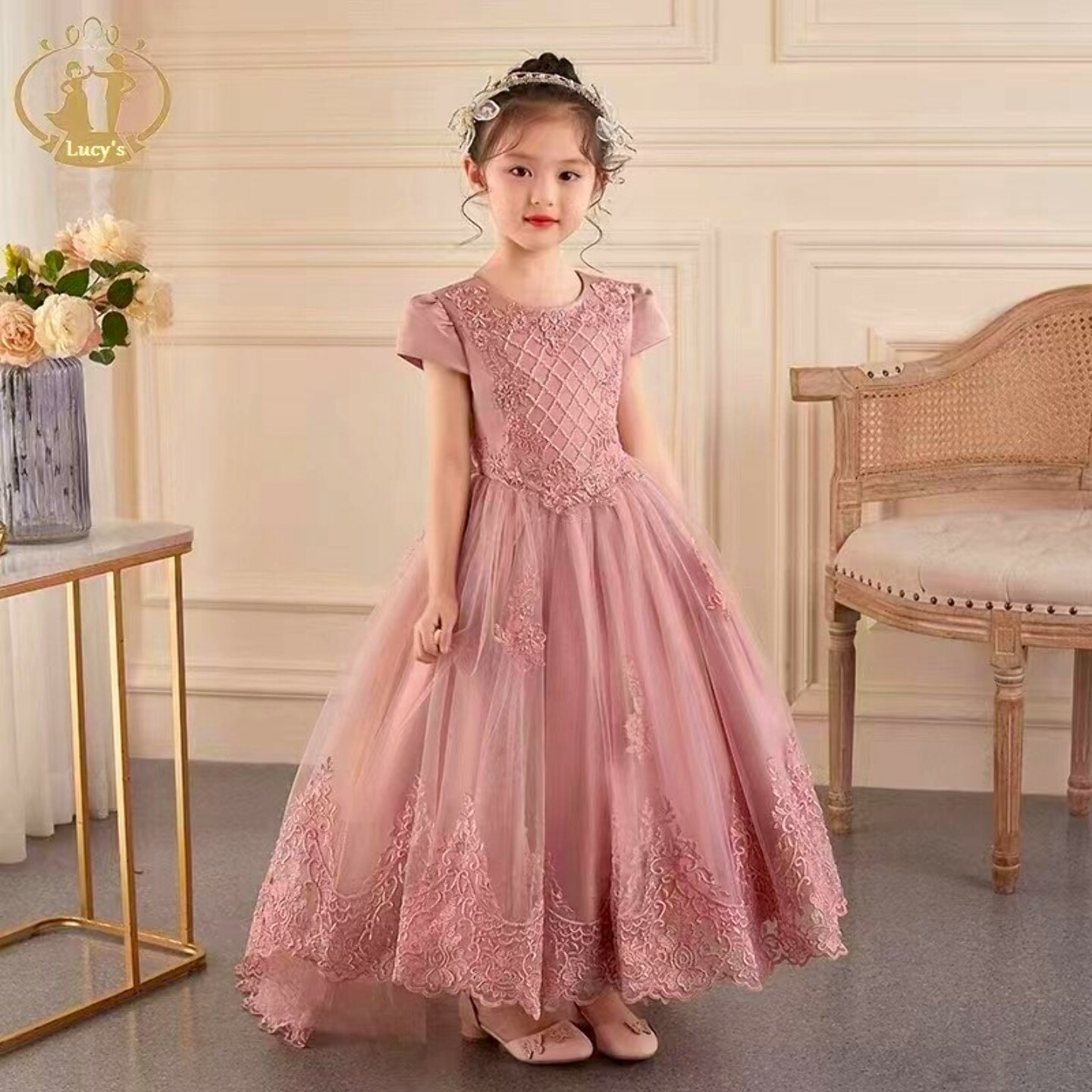 Presenting our exquisite Dusty Pink Short-Sleeve Flower Girl Dress, perfect for weddings, White Sundays, birthday parties, and other special occasions. This trailing gown is expertly tailored using top-tier fabric, ensuring the utmost quality and longevity. With precise cutting and meticulous handwork, this dress exemplifies sophistication in its purest form. Its dusty pink hue and short-sleeve design make it a versatile addition to any girl's wardrobe.