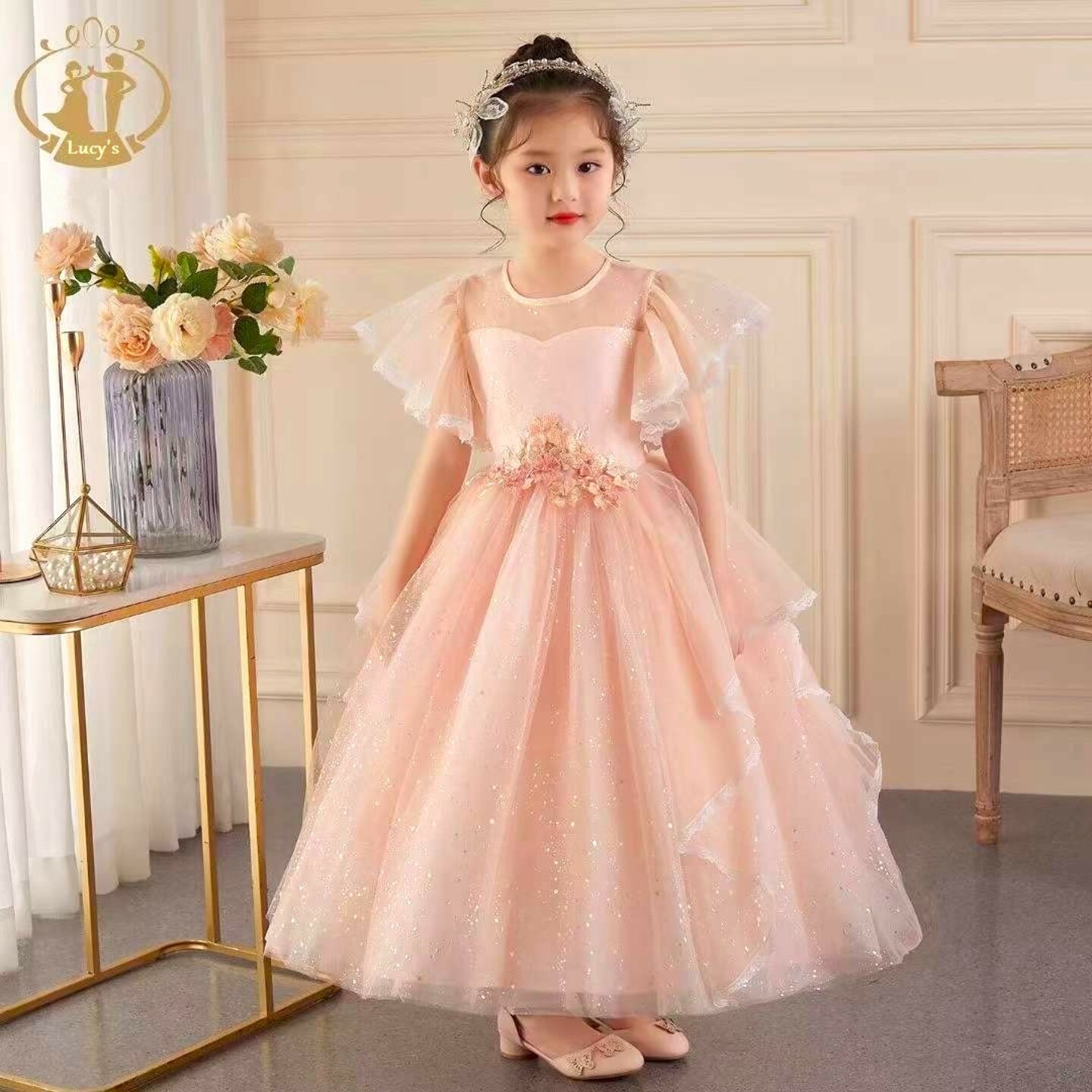 Peach Party Dress for girls, a stunning piece meticulously handcrafted from high-quality shimmering fabric. Featuring professional tailoring and a comfortable mid-sleeve design, this dress is an excellent choice for birthday parties and various special occasions, adding a touch of elegance and charm to any event.