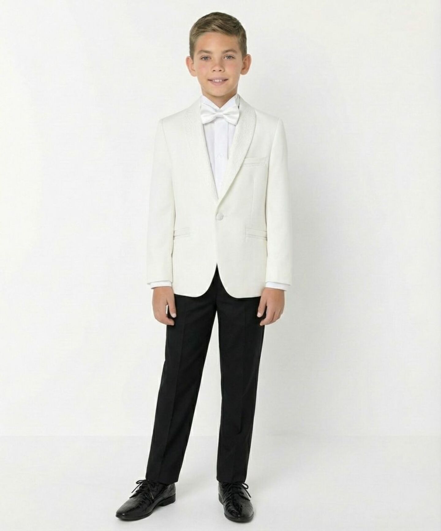 Ideal for the First Holy Communion, ring bearers, formal portraits, proms, black-tie events, evening weddings, and occasions requiring distinguished tuxedo-style attire. Pair with white dress shirt and coordinating bow tie to complete the look.