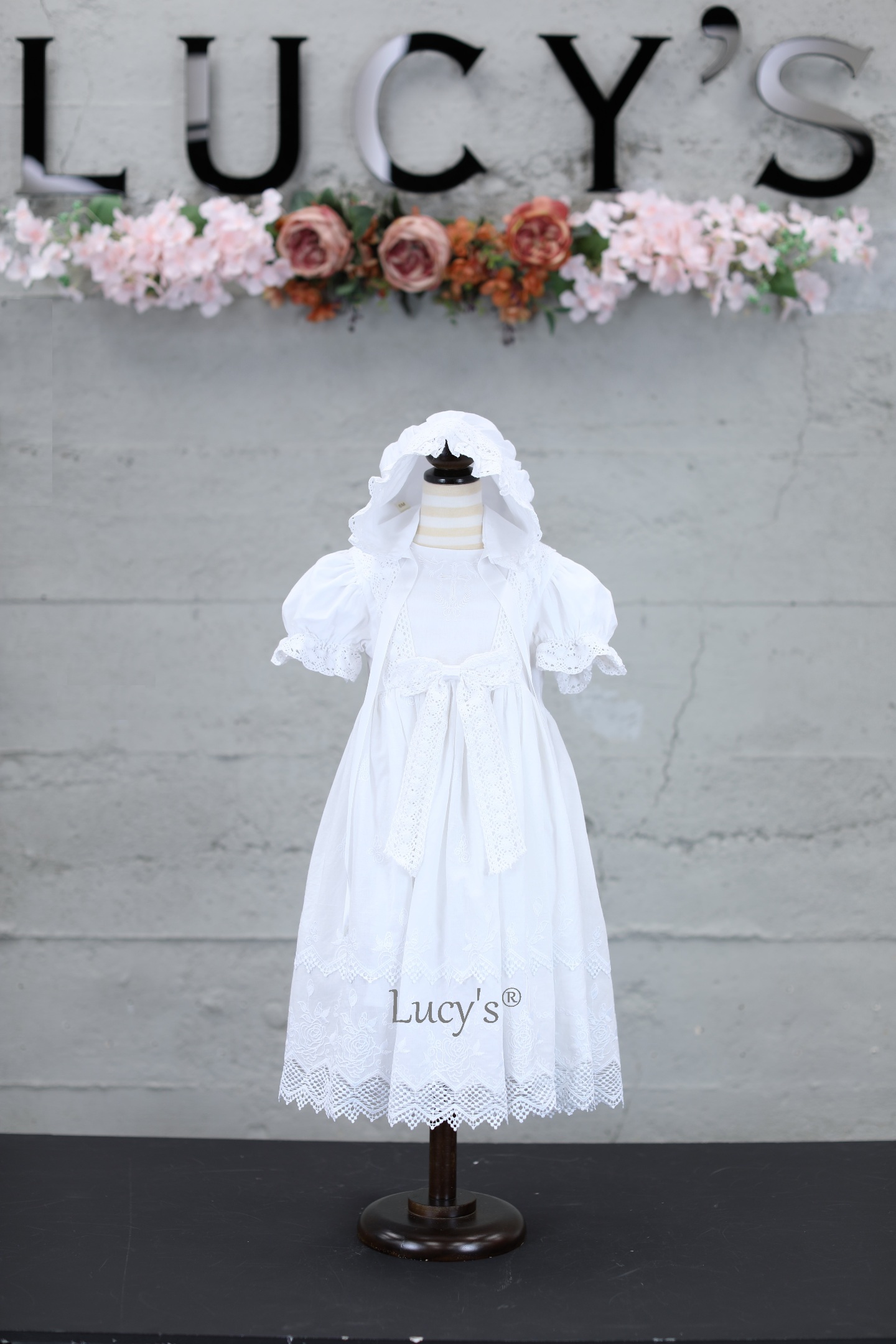 Janice Baby Girls Pure Cotton Classic Christening Gown, Baptism Dress Bonnet Set - Nimble | Lucy's