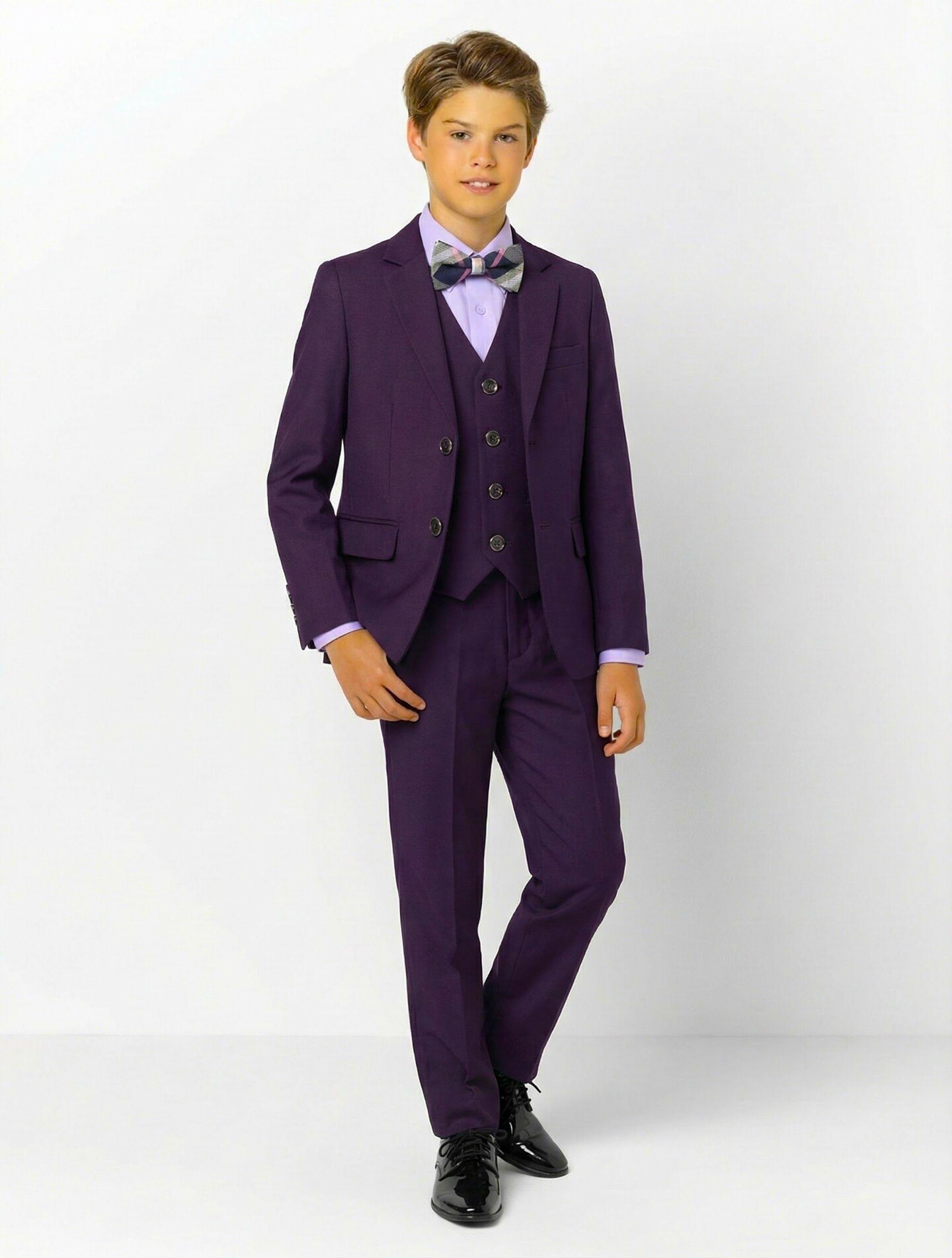 Jayden Purple 3-Piece Boys Formal Suit Jacket, Waistcoat & Trousers | Lucys